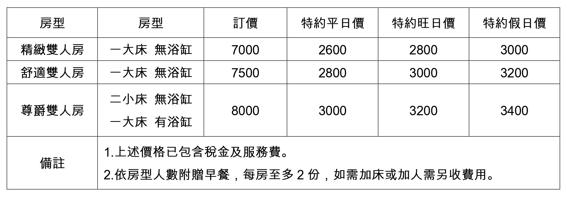 √ 部分房型不適用企業優惠價,如需預訂未公告之房型,其價格皆以當日住宿之房型房價為主。