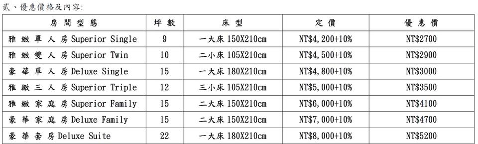優惠價按照房型人數入住,如需加床每人收取 1000元。(含早餐及服務費及稅金 )。
