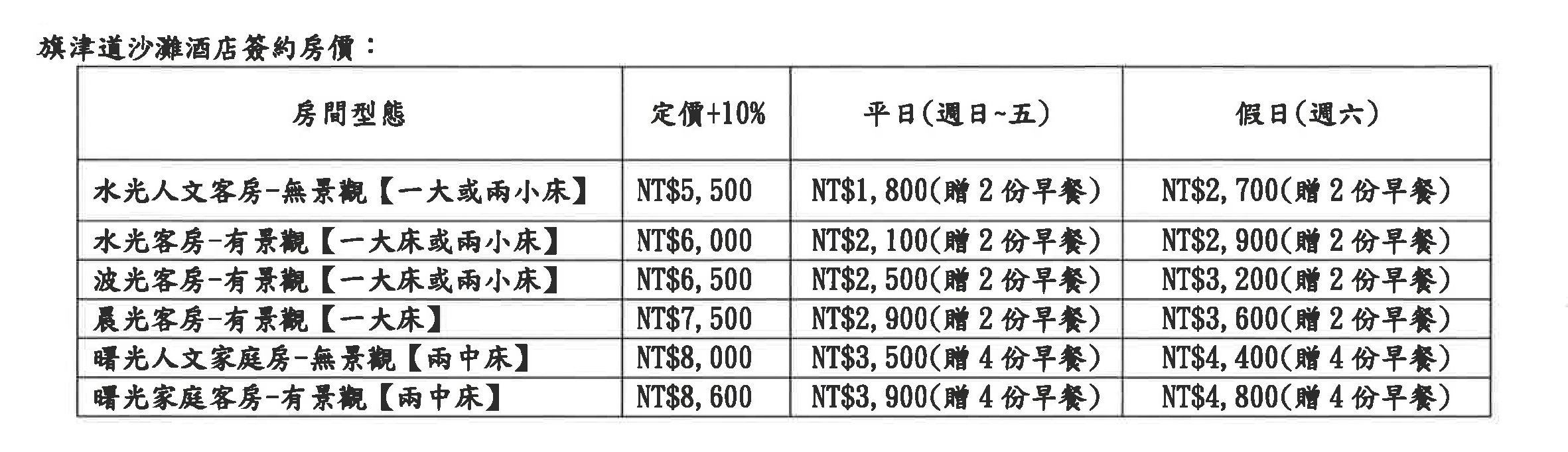 春節春假假期(依酒店定義),恕不適用合約價;連續假日、跨年期間,須以假日價加價 $200/間。