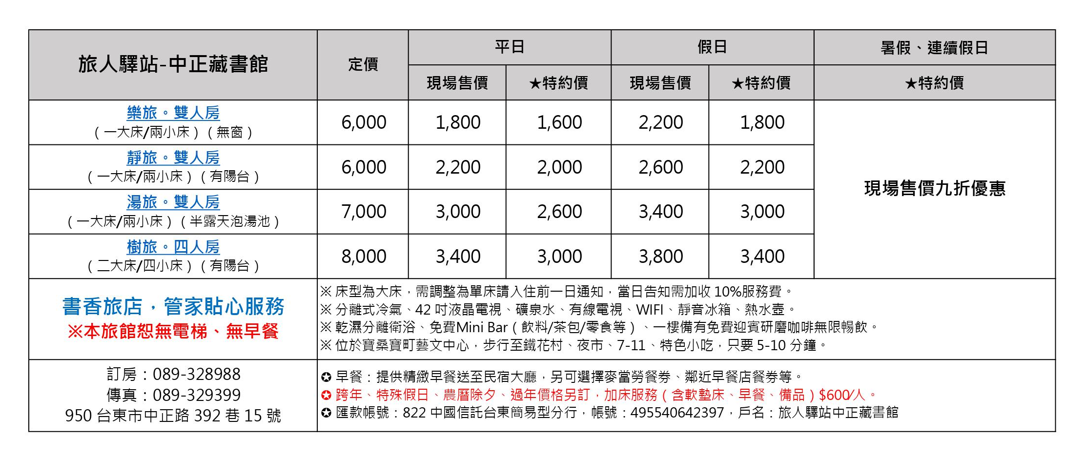 跨年、特殊假日、農曆除夕、過年價格另訂,加床服務(含軟墊床、早餐、備品)$600 ∕人。