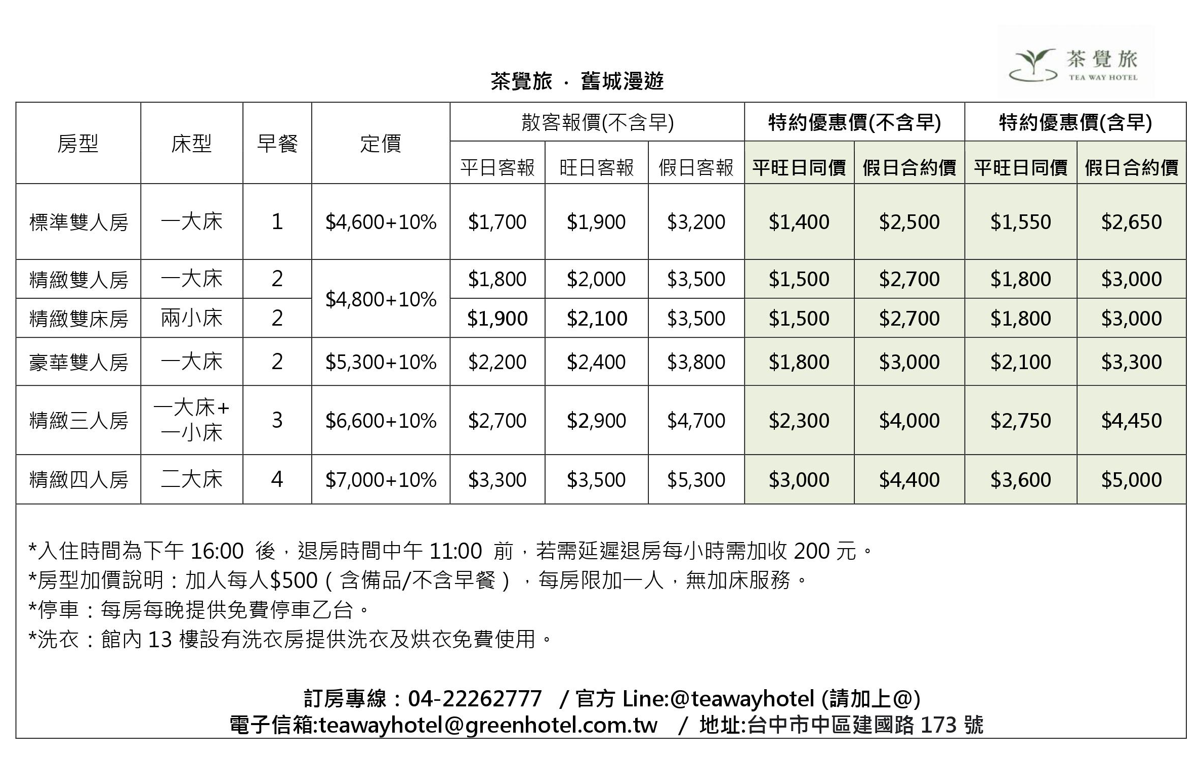 房型加價說明:加人每人$500(含備品/不含早餐),每房限加一人,無加床服務。