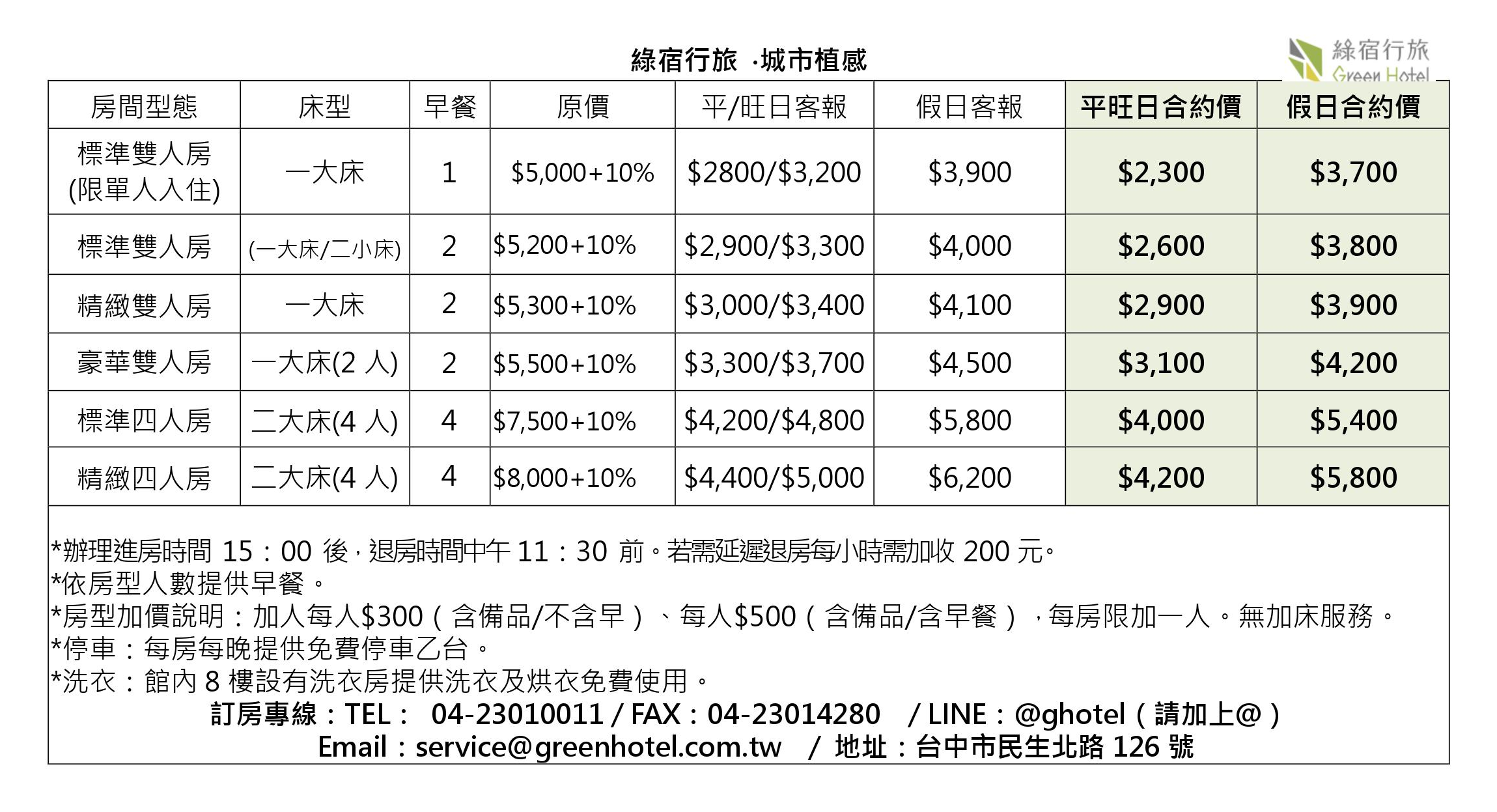 訂房專線:04-2301-0011