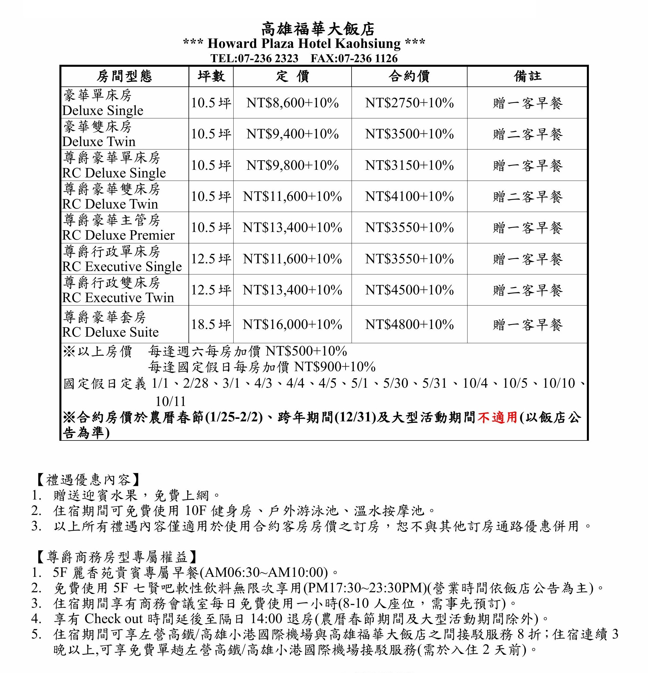 》https://www.facebook.com/HowardPlazaHotelKaohsiung