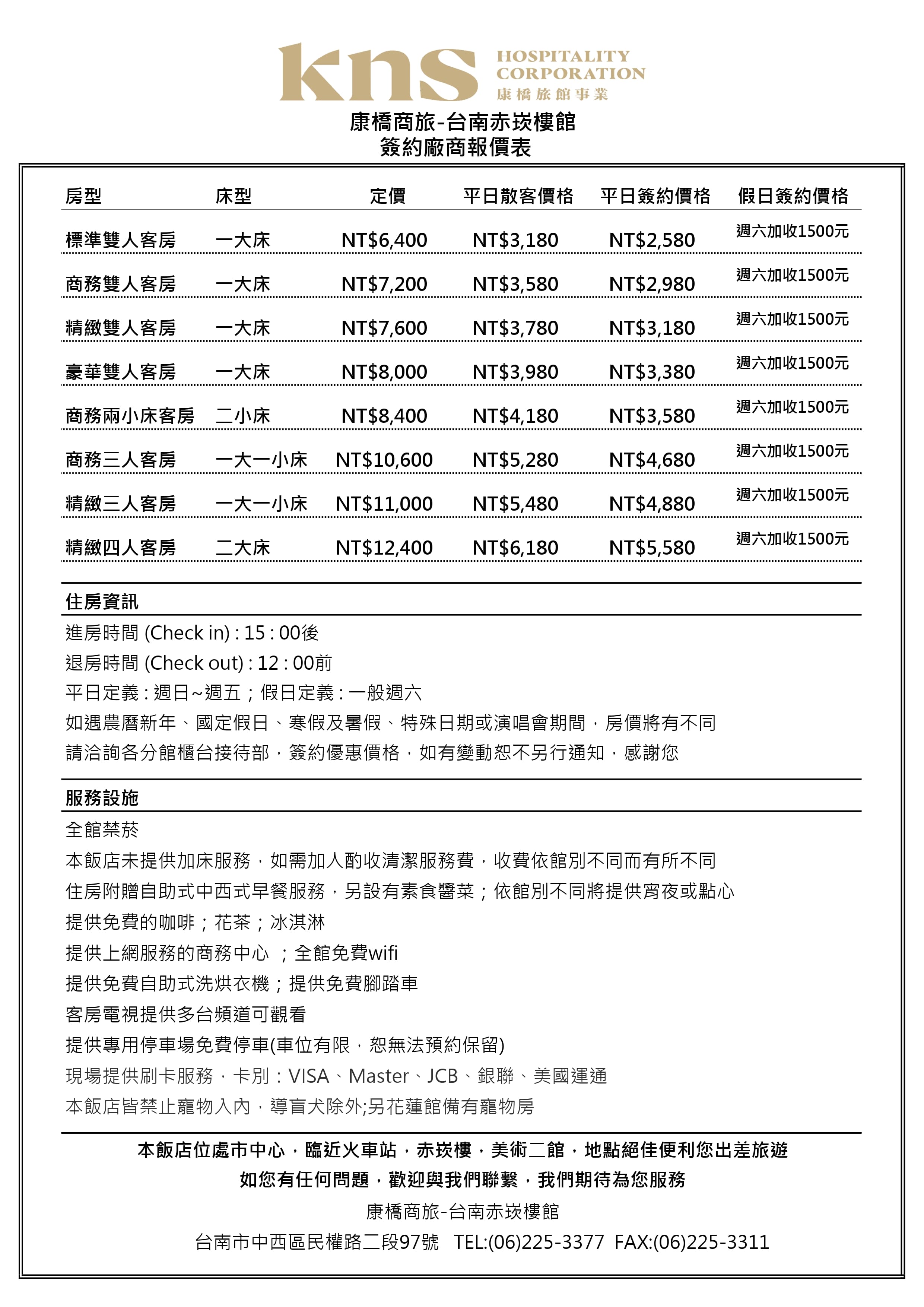 訂房專線TEL : (06)225-3377