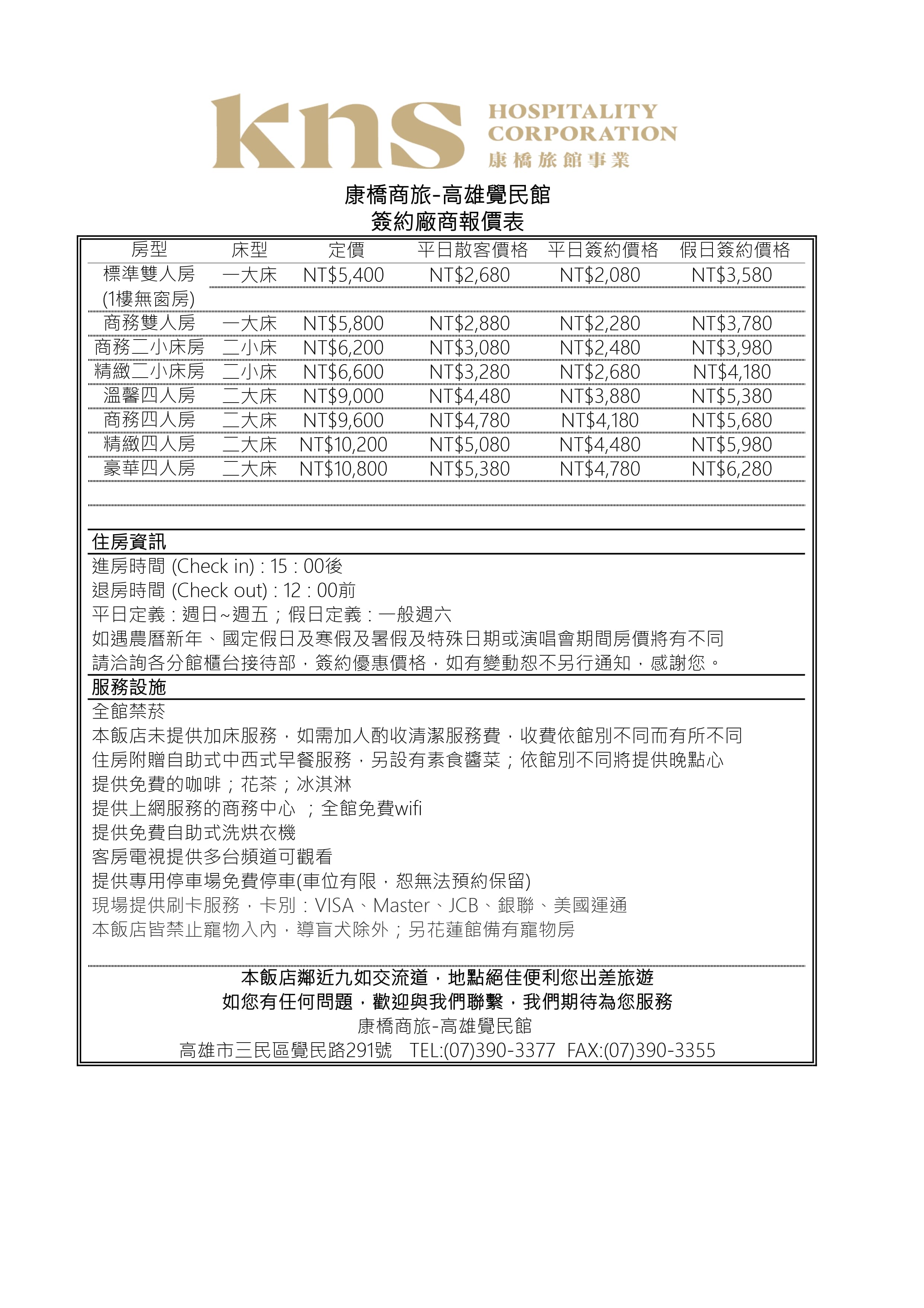 訂房專線TEL : (07)390-3377