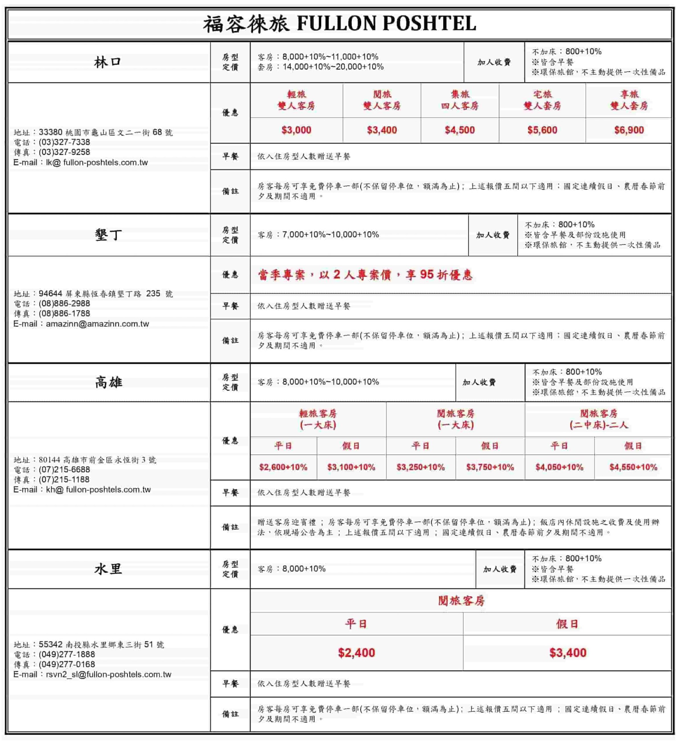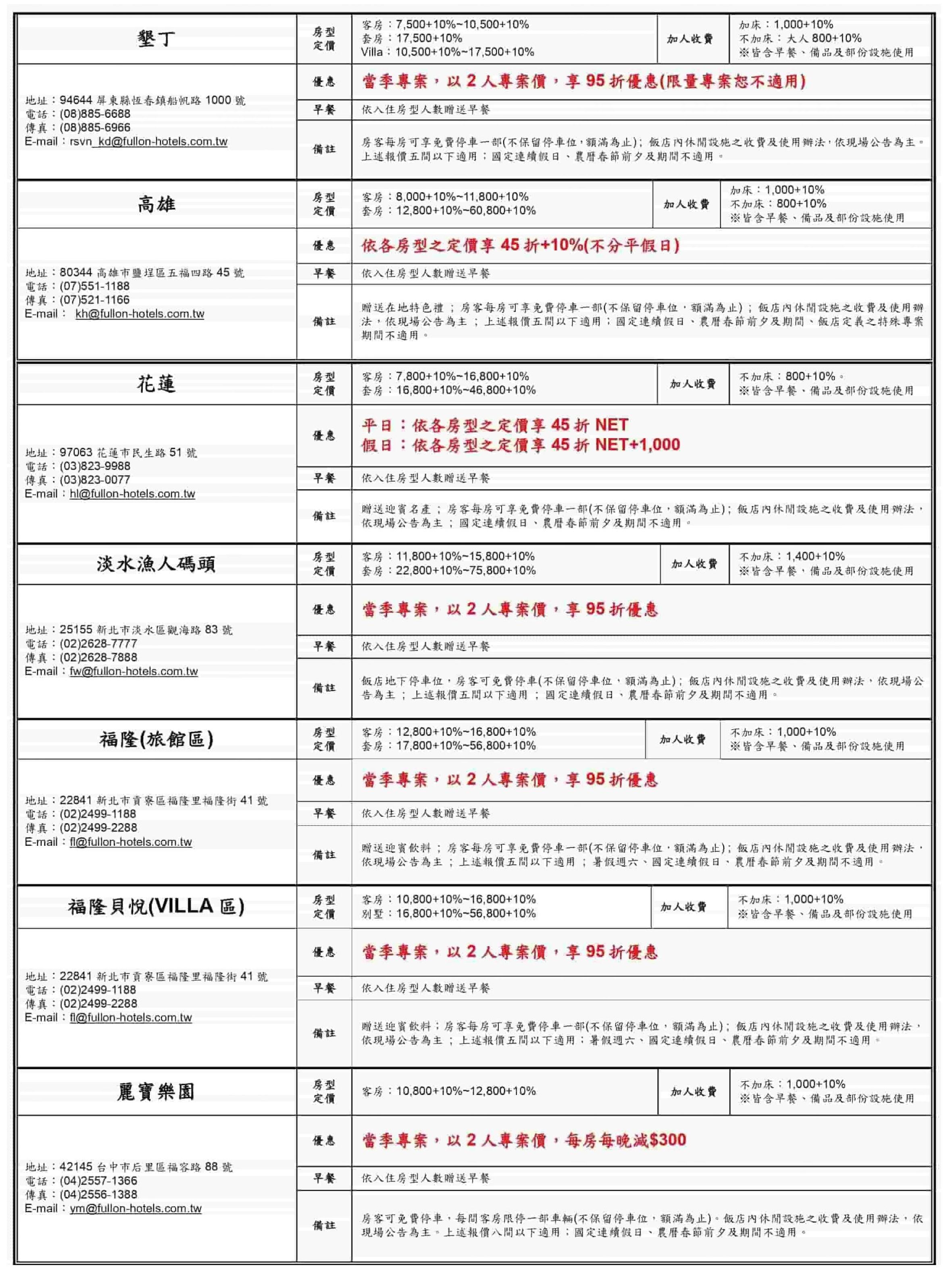 優惠價格不得與其他優惠專案合併使用,不適用於跨年元旦、農曆春節、國定、連續假日等其他專案期間,且房型定價如有變動,不另通知。