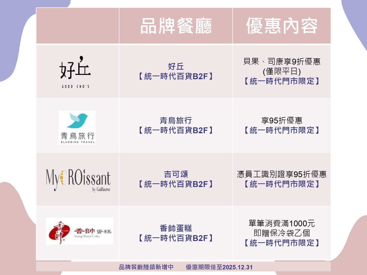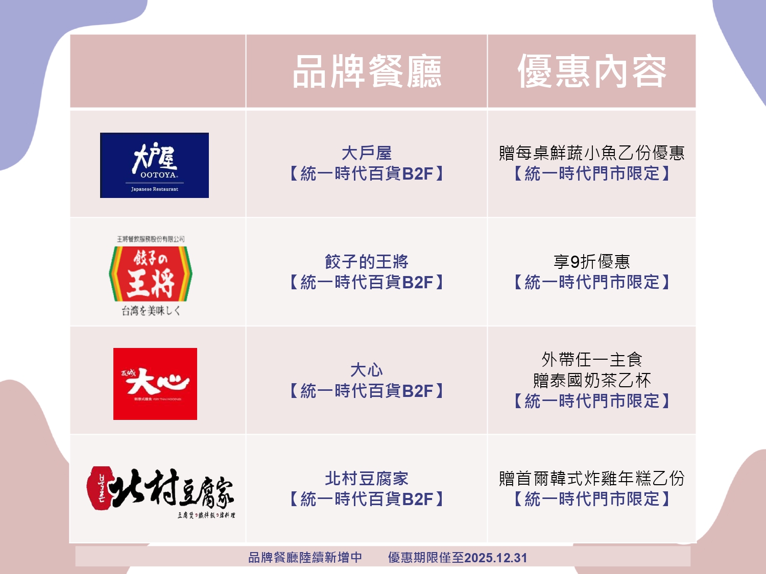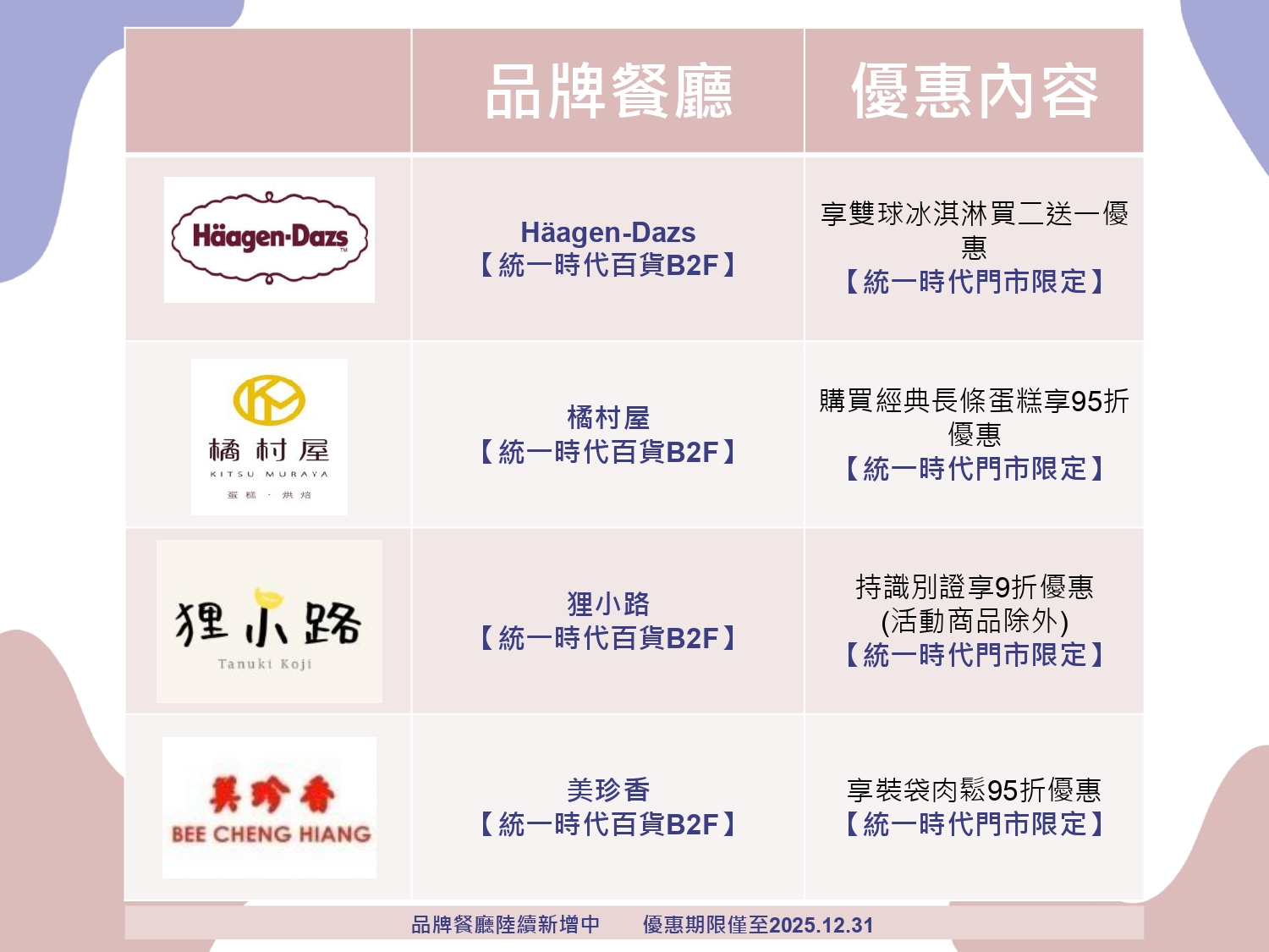 本期店櫃活動日期至114年12月31日止 (屆期會在更新公告)