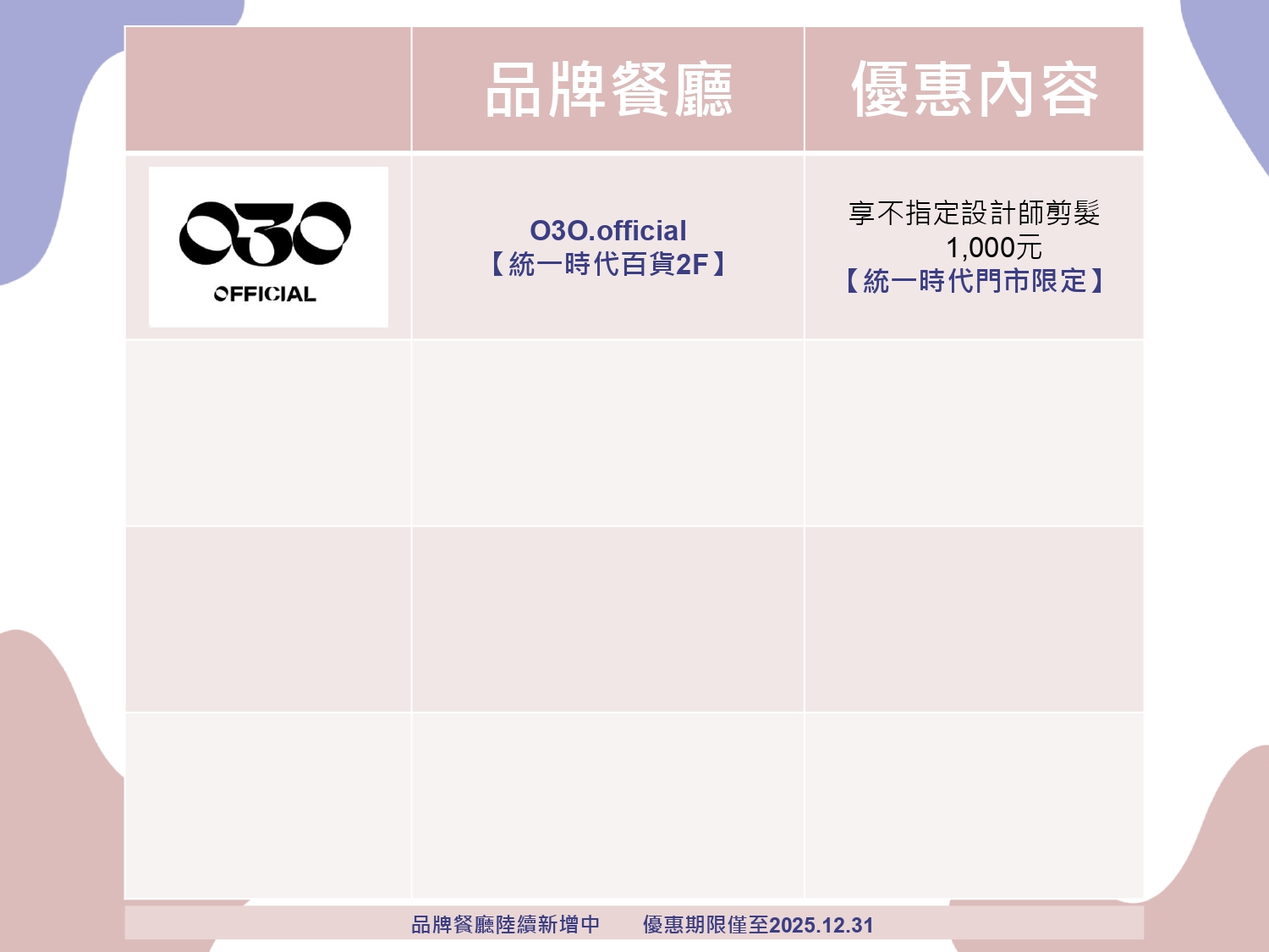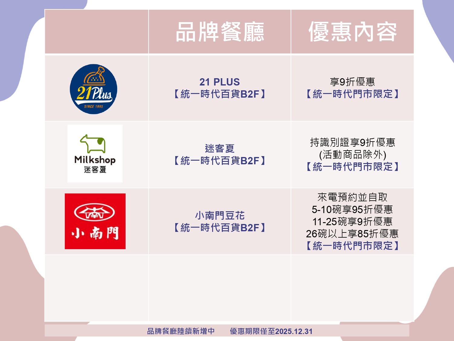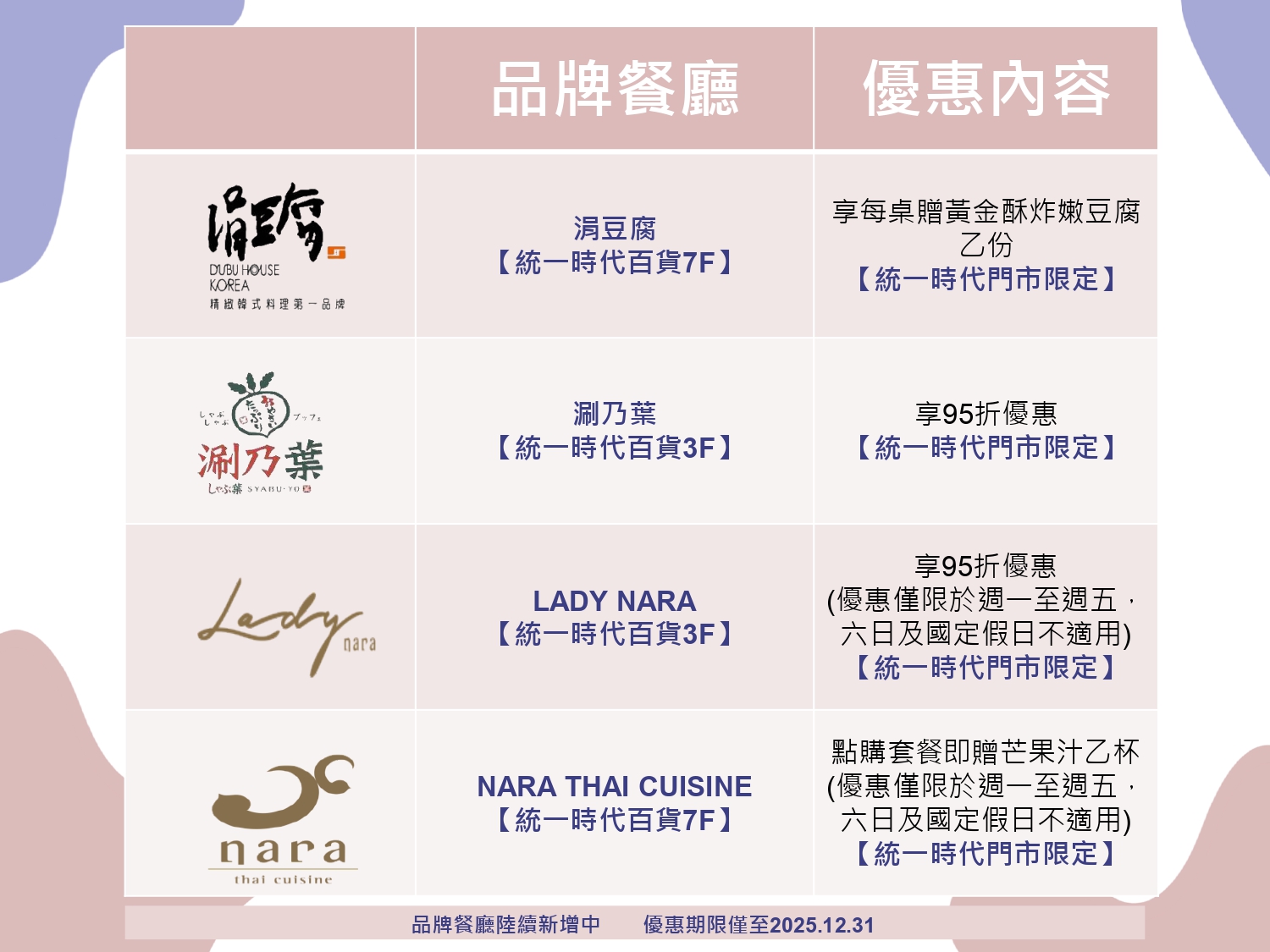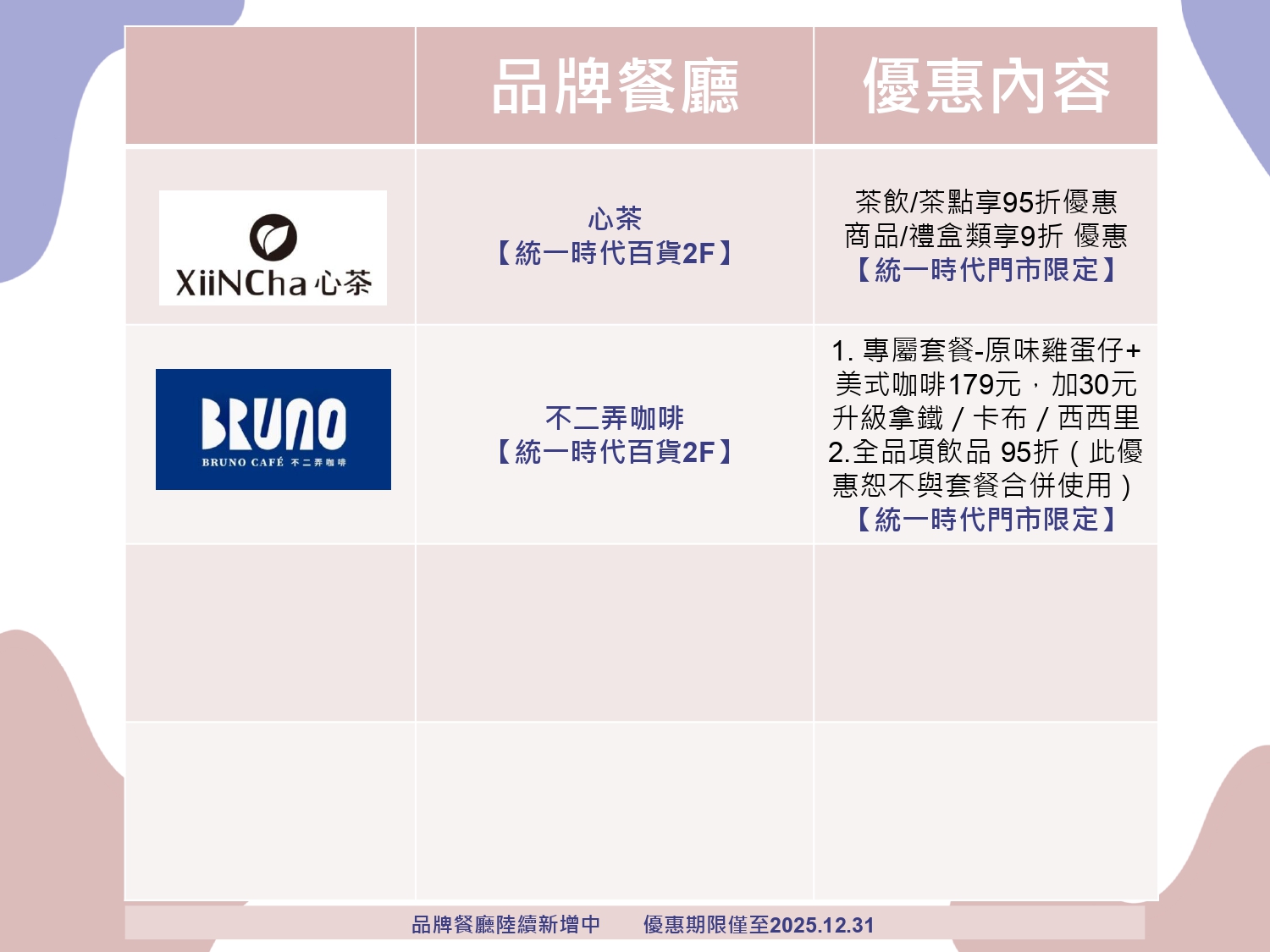 本期店櫃活動日期至114年12月31日止 (屆期會在更新公告)
