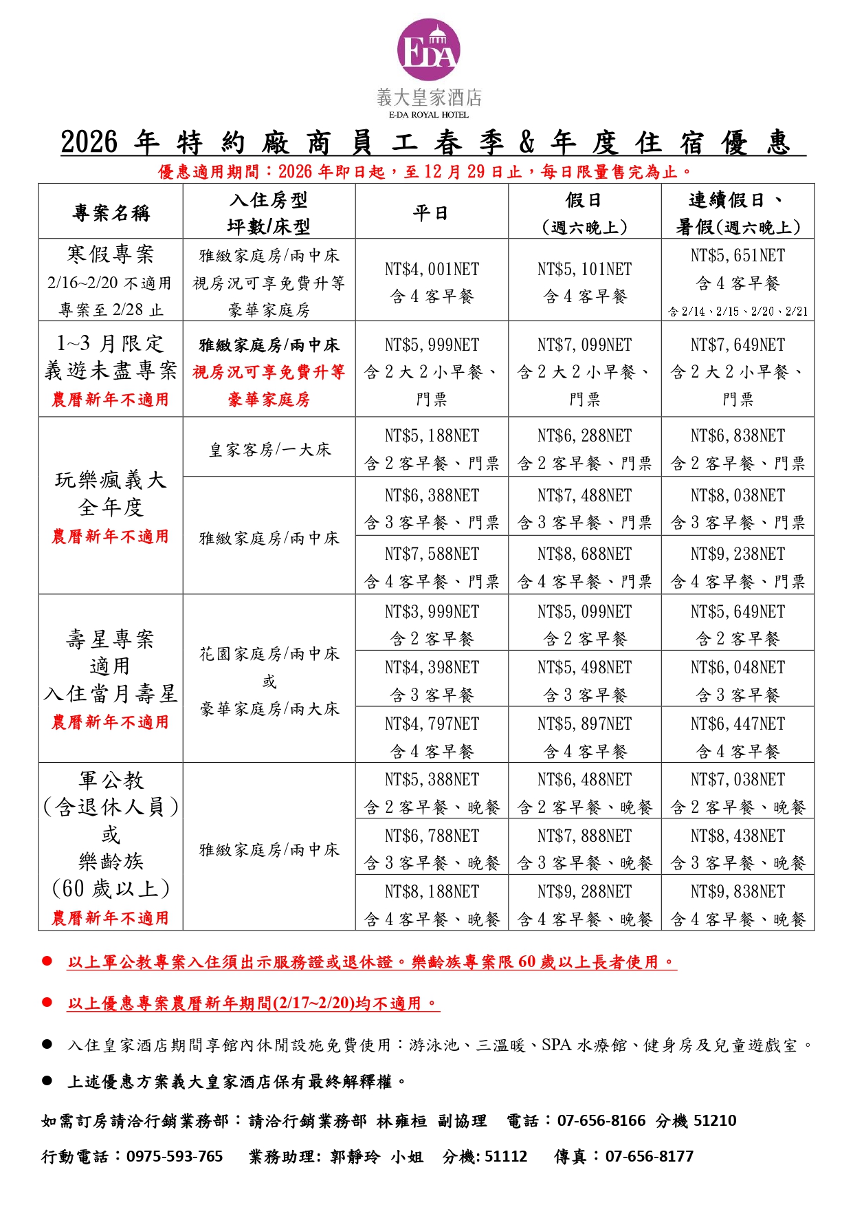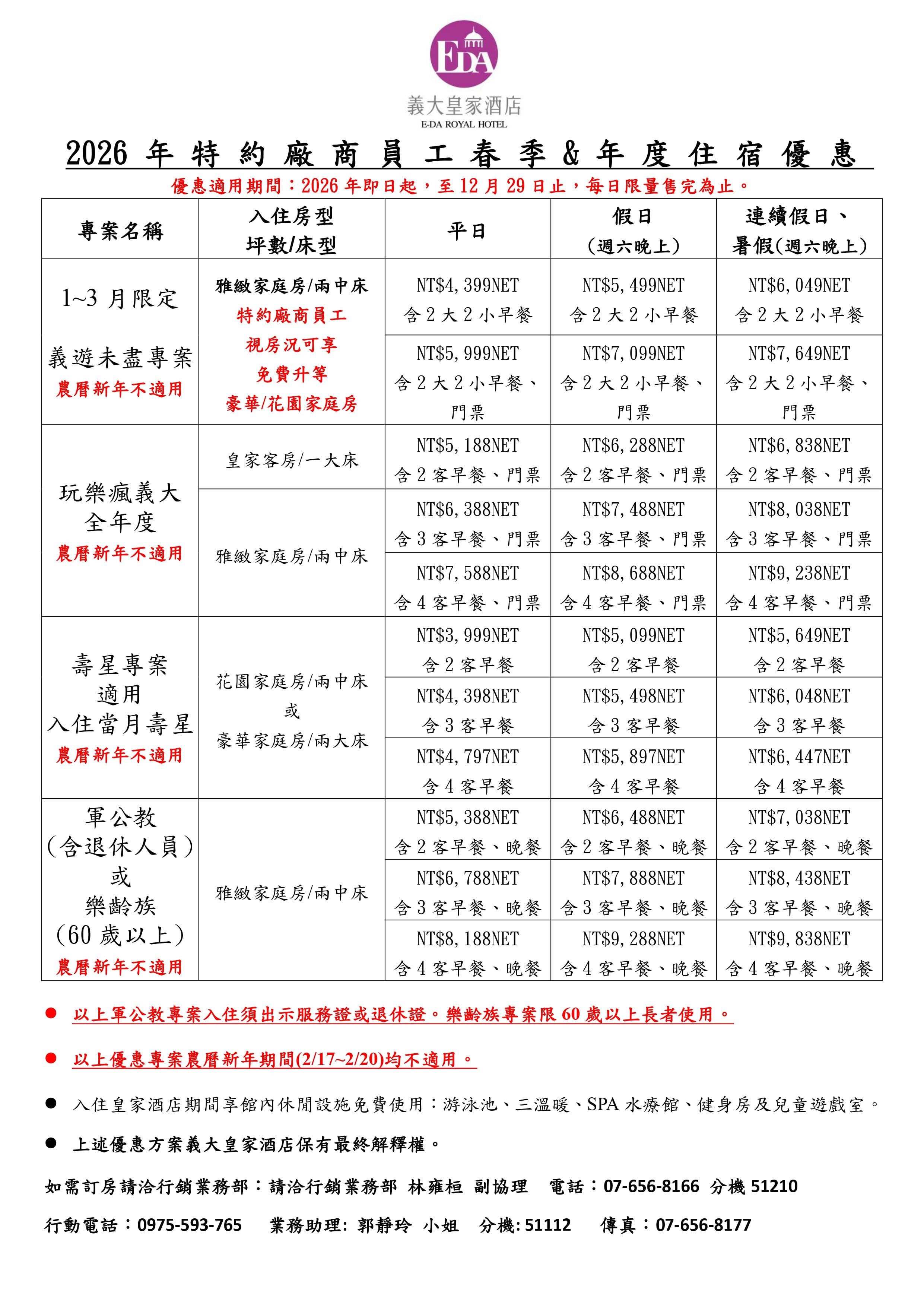 如需訂房,請洽行銷業務部