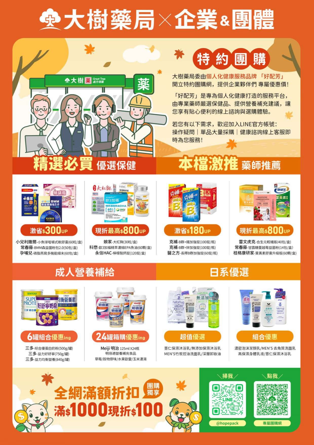 限定商品滿 $ 1000 折扣 $ 100 (可累折),三五同事揪團購買更優惠! 活動只到 2025年12/31止,請各位同仁務必把握機會~