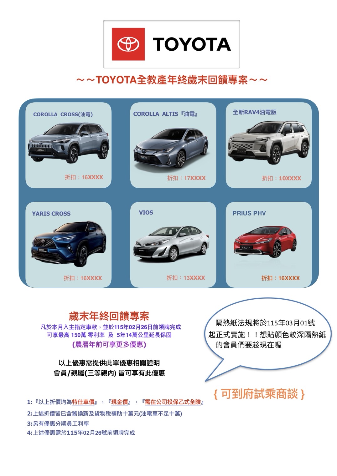 【TOYOTA汽車2月全教產會員專屬購車優惠】
