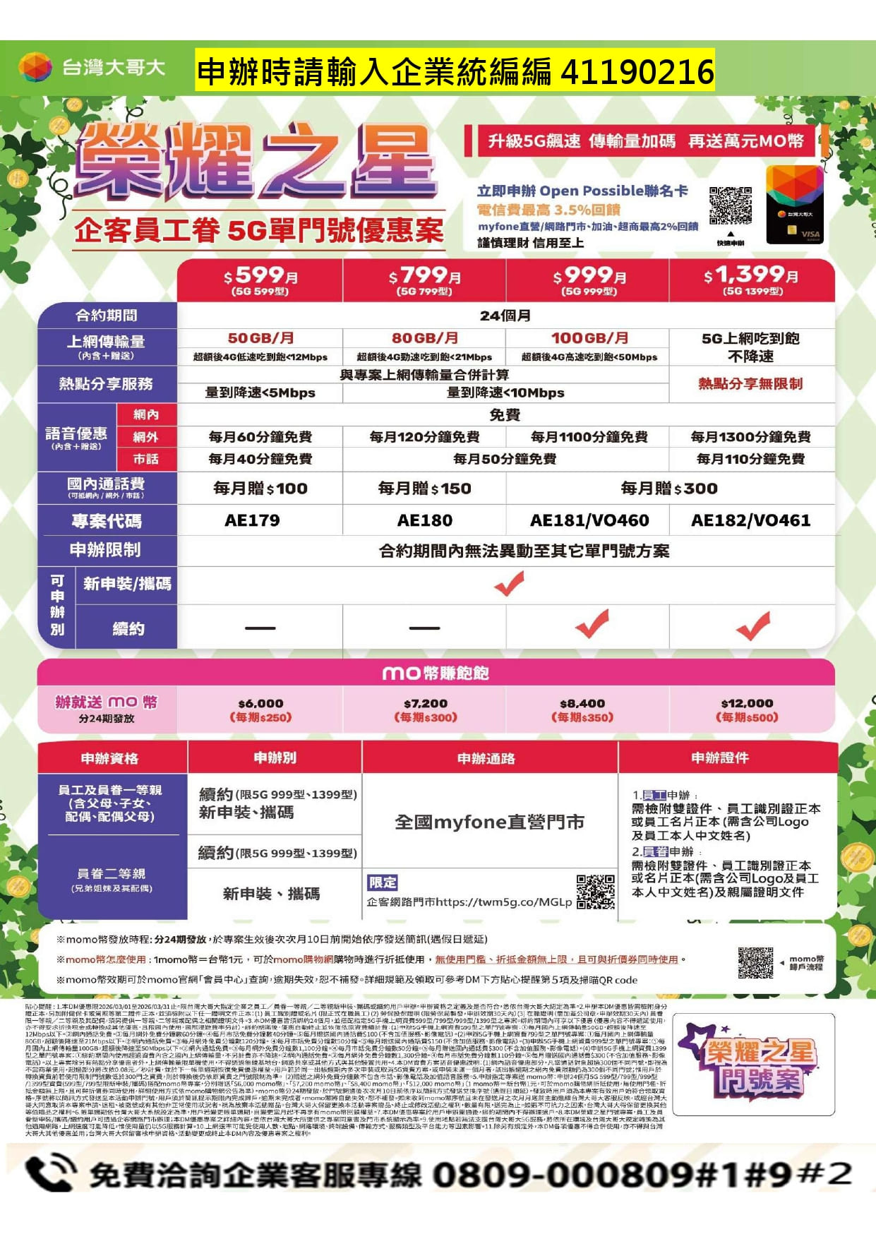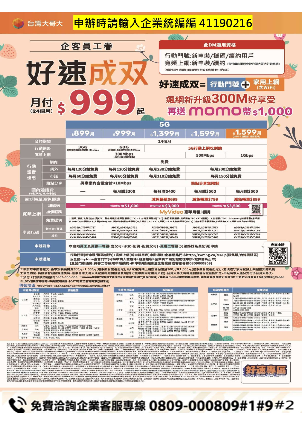 【台哥大3月企業員工眷專案】