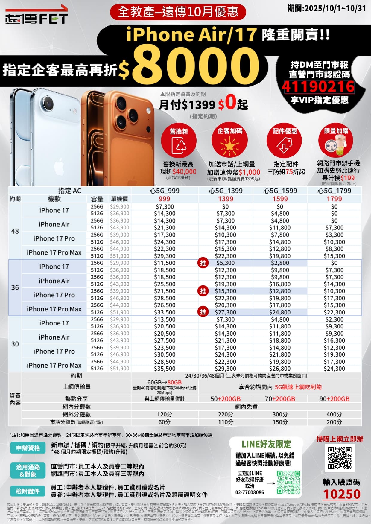 (四)秀DM申辦指定方案,享iPhone17最高折$8000