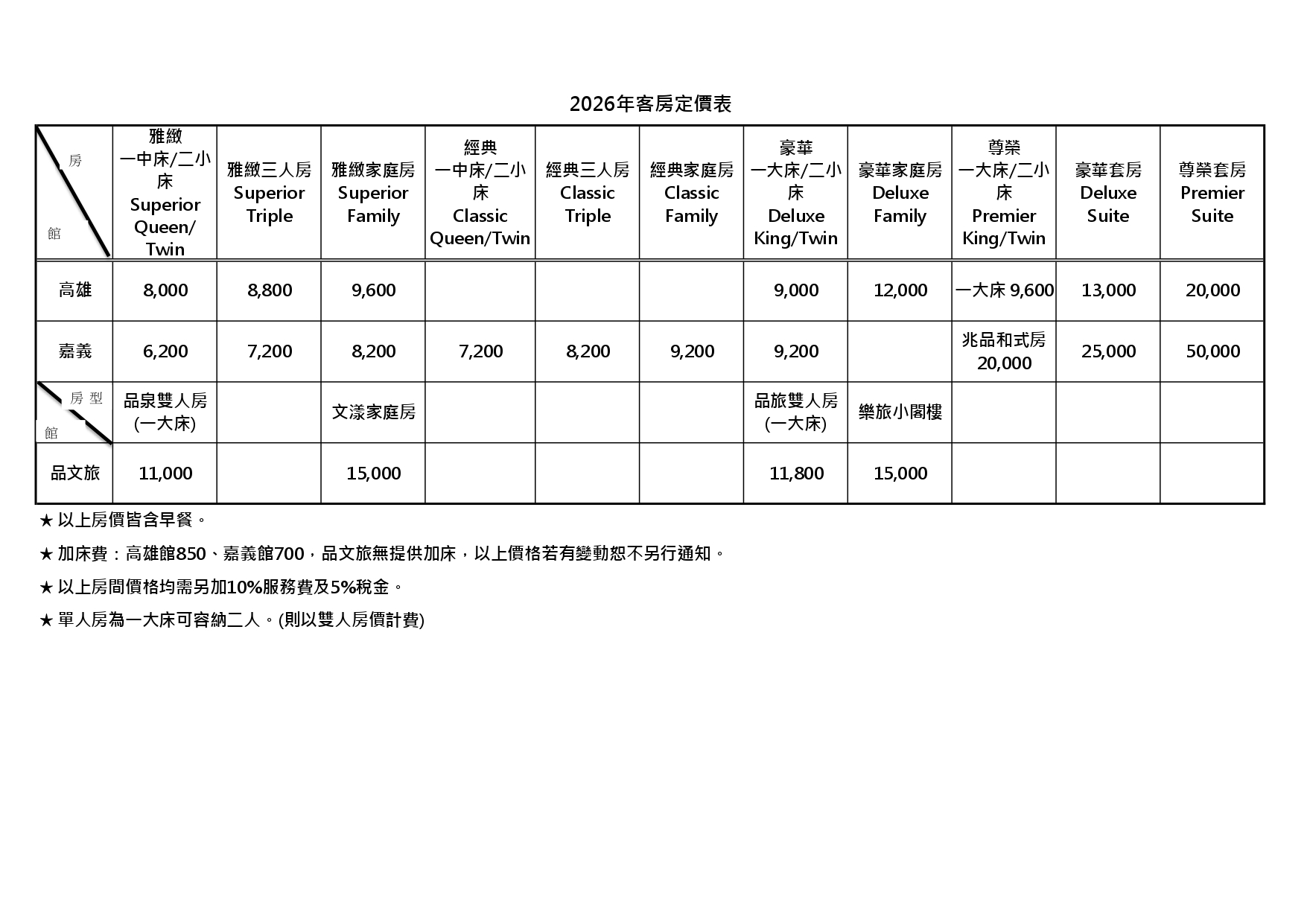 1.各館團體訂房、餐及會議服務,另有優惠,請洽業務人員。