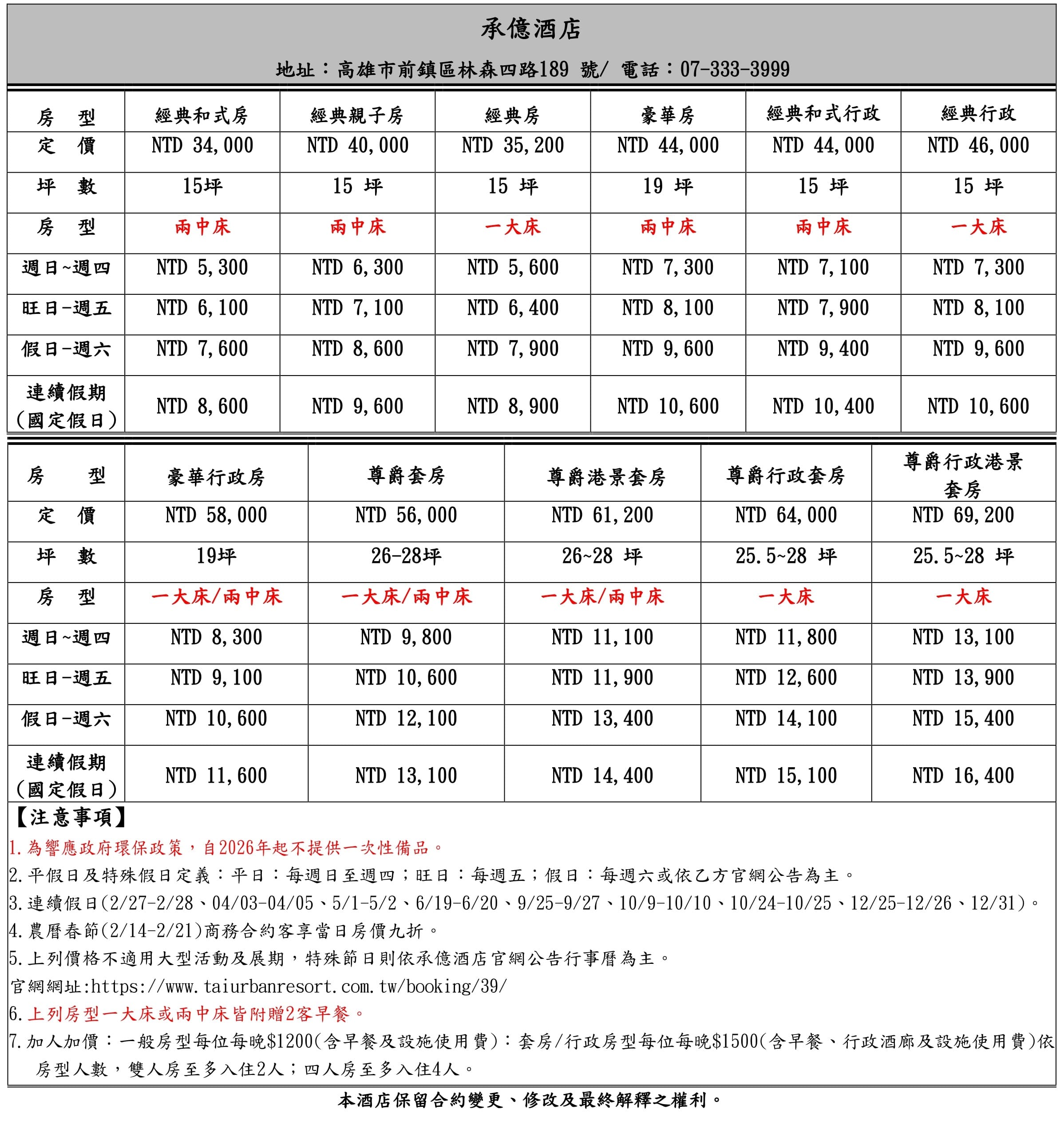 5.農曆春節不適用商務合約價,依承億酒店公告為主。