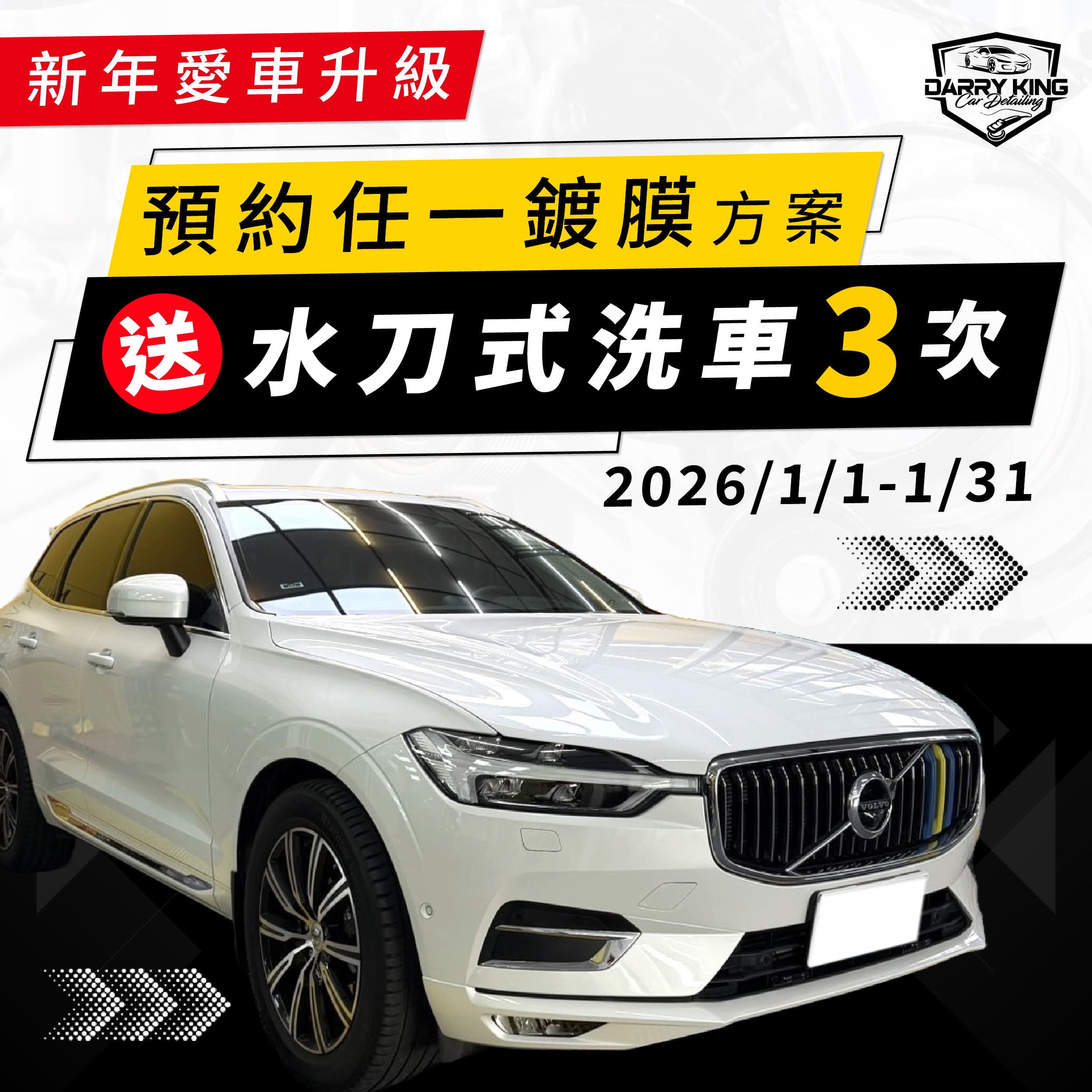 凡預約任一鍍膜方案,即可獲贈「水刀式洗車電子券」3次