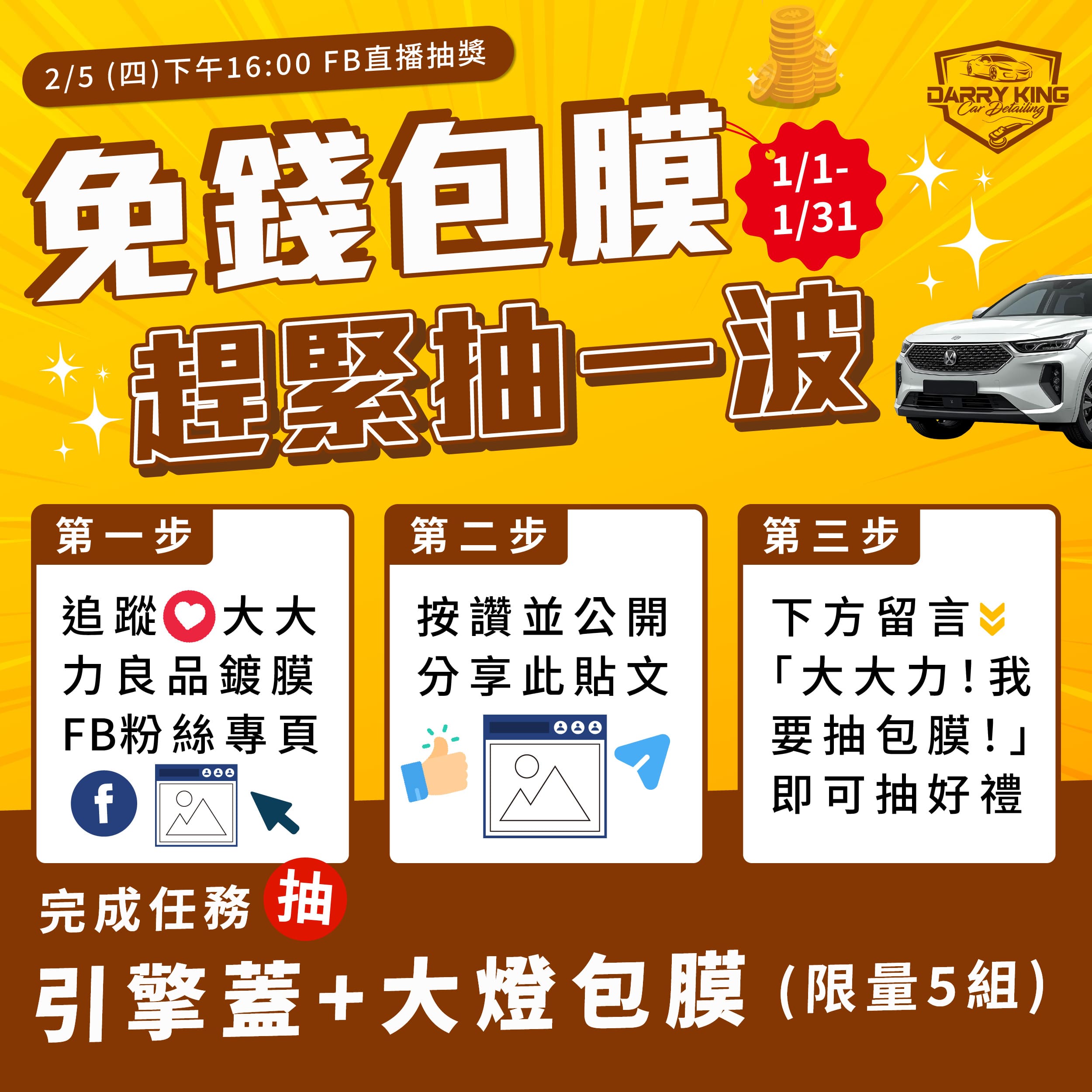 ✪ 活動二|完成任務 抽引擎蓋+大燈包膜(限量5組)