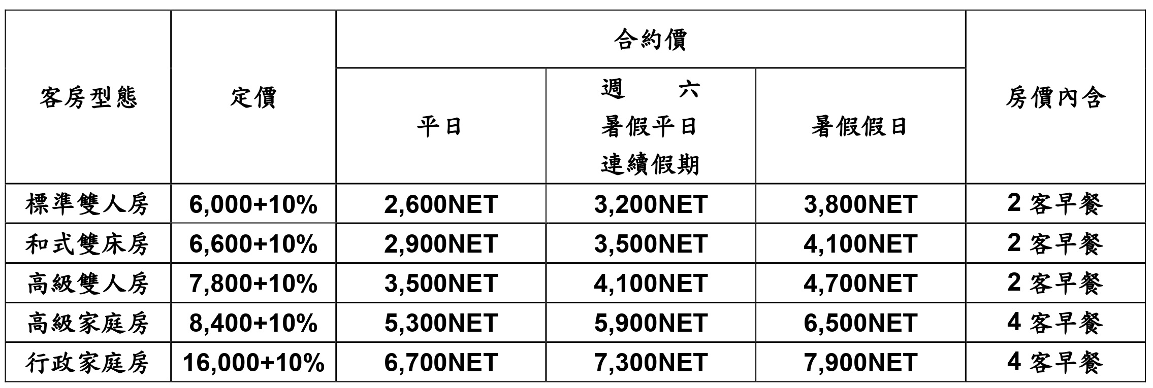 1. 加人加價成人每位NT$800/NET(含早餐)、小孩每位NT$600/NET(含早餐,6歲以上~11歲以下),5歲以下不收費。