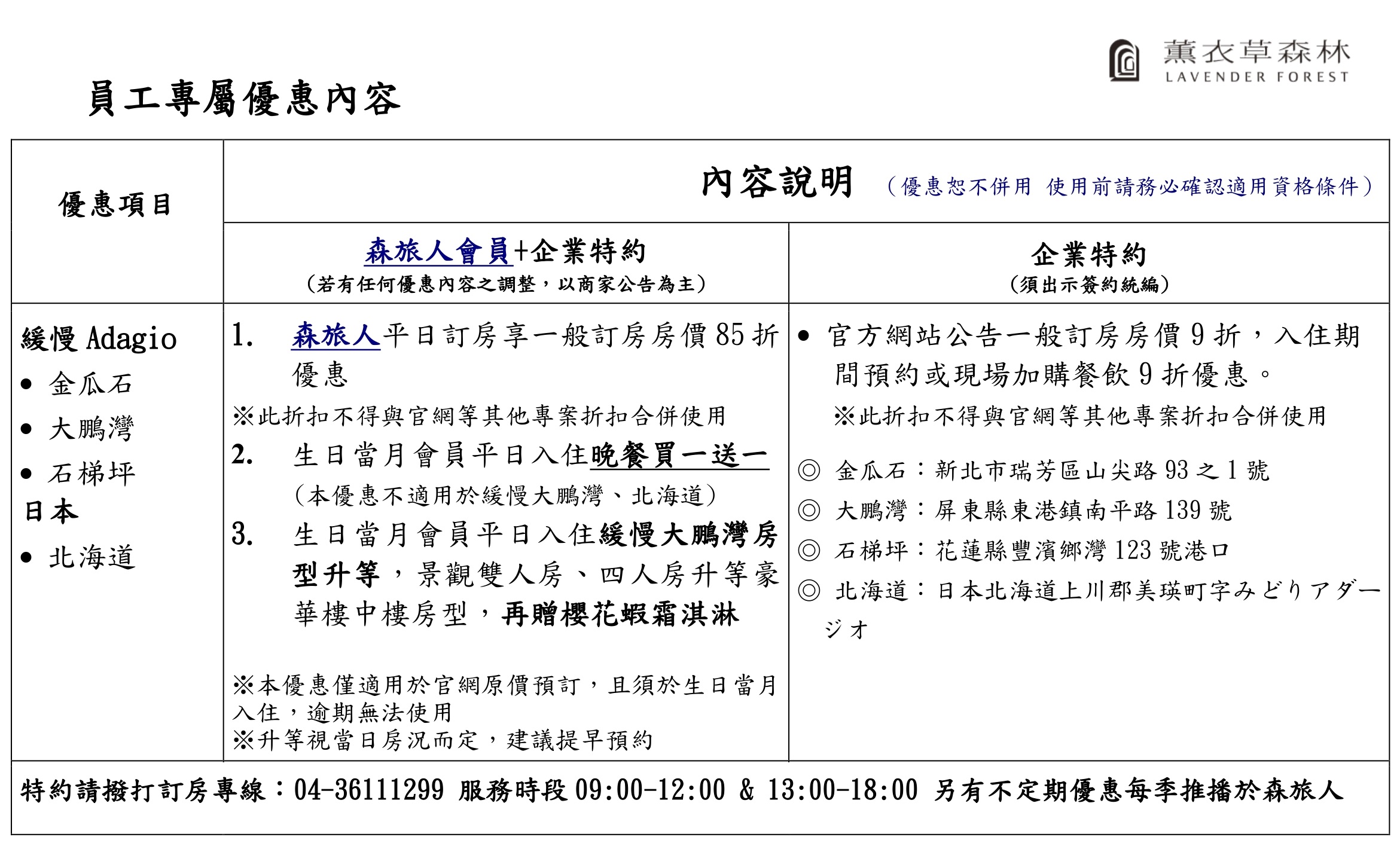 * 提醒:除了出示森旅人會員之外,現場使用特約時,須請出示全教產會員福利卡 並告知 統編【41190216】