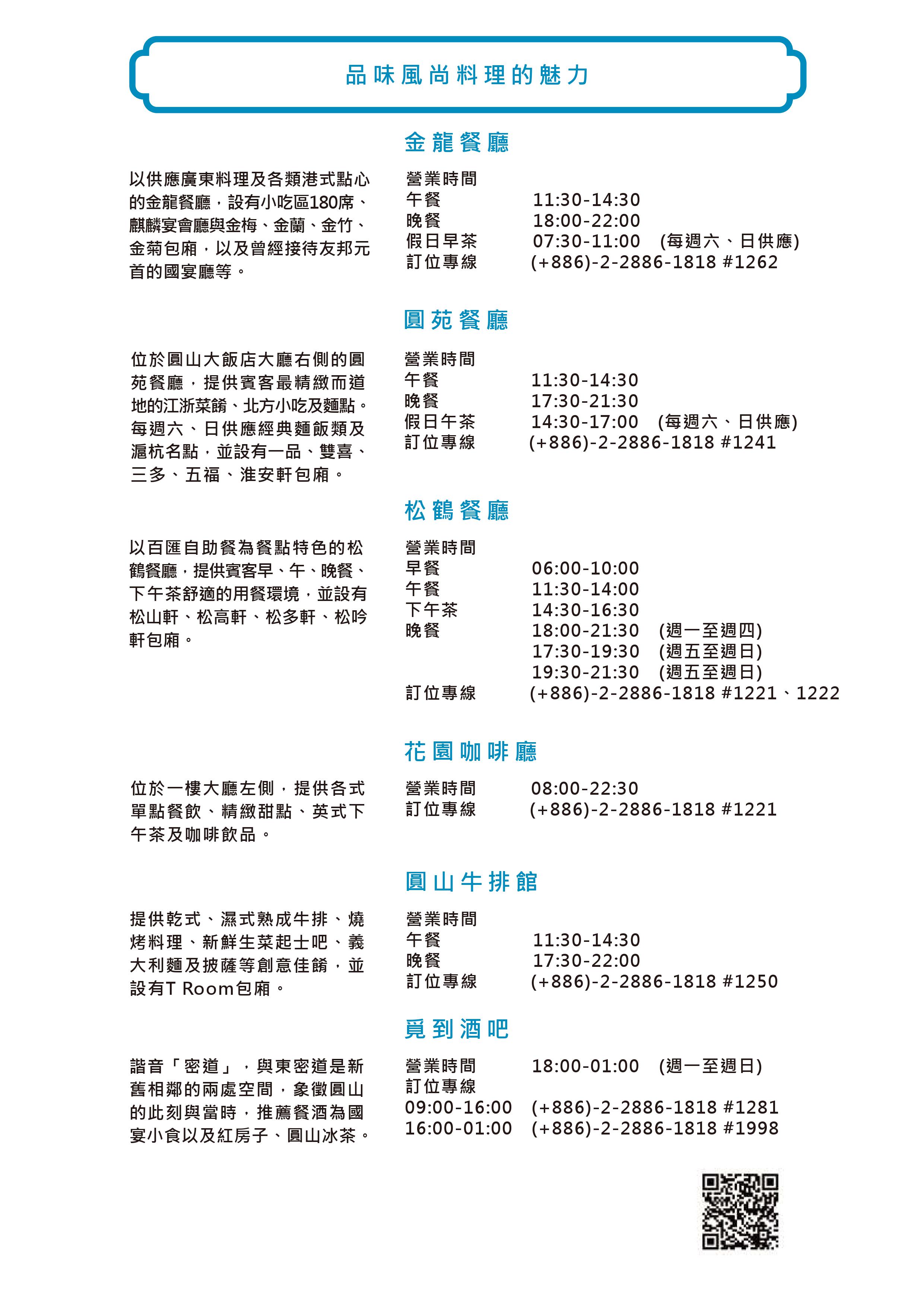 ※優惠價內含乙客早餐,第2位早餐優惠價為每客NT$760NET含服務費 (早餐定價每客NT$830+10%服務費)。