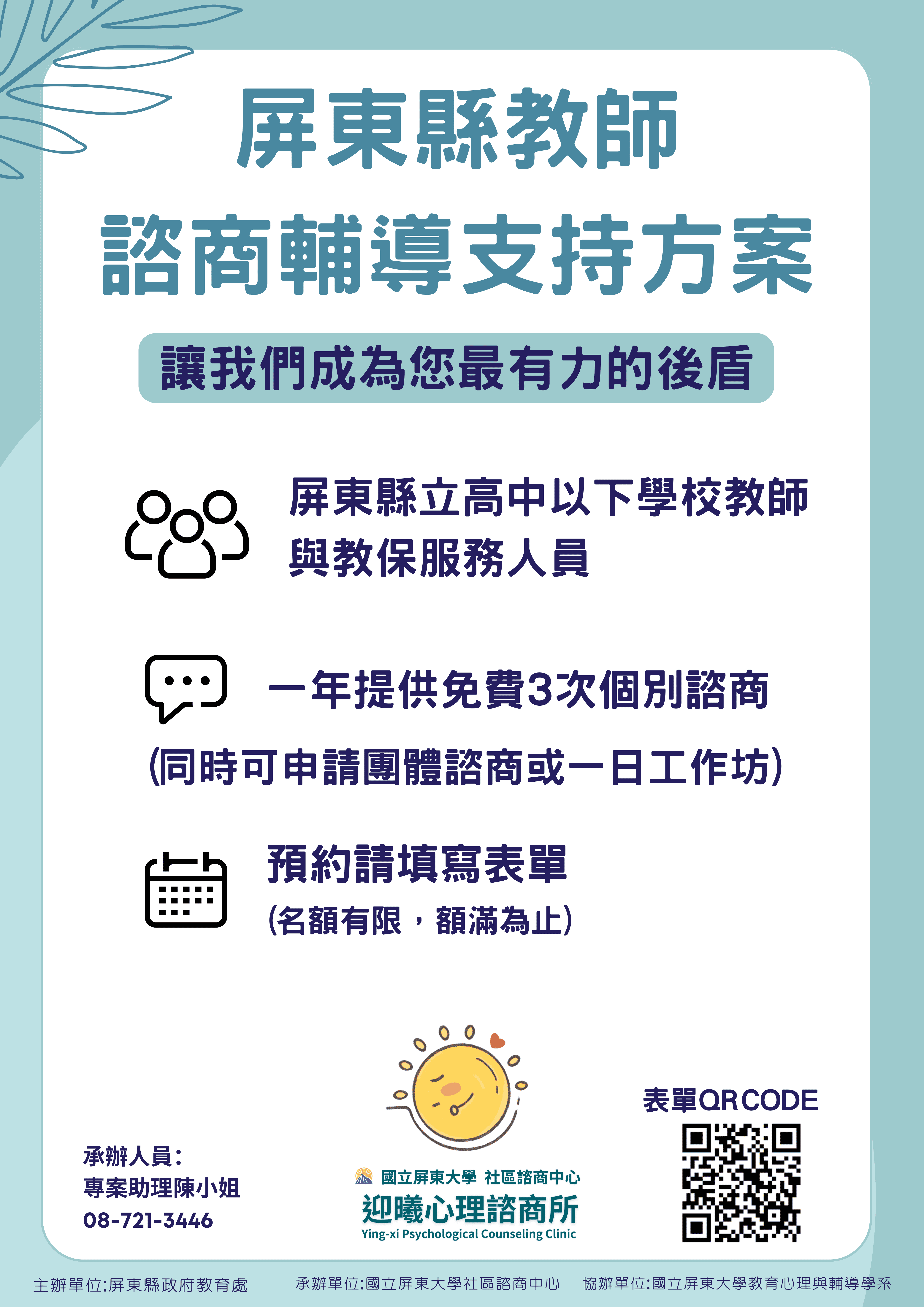 ※ 另有屏東縣教師諮商輔導支持方案 ※ (請見下方公告)