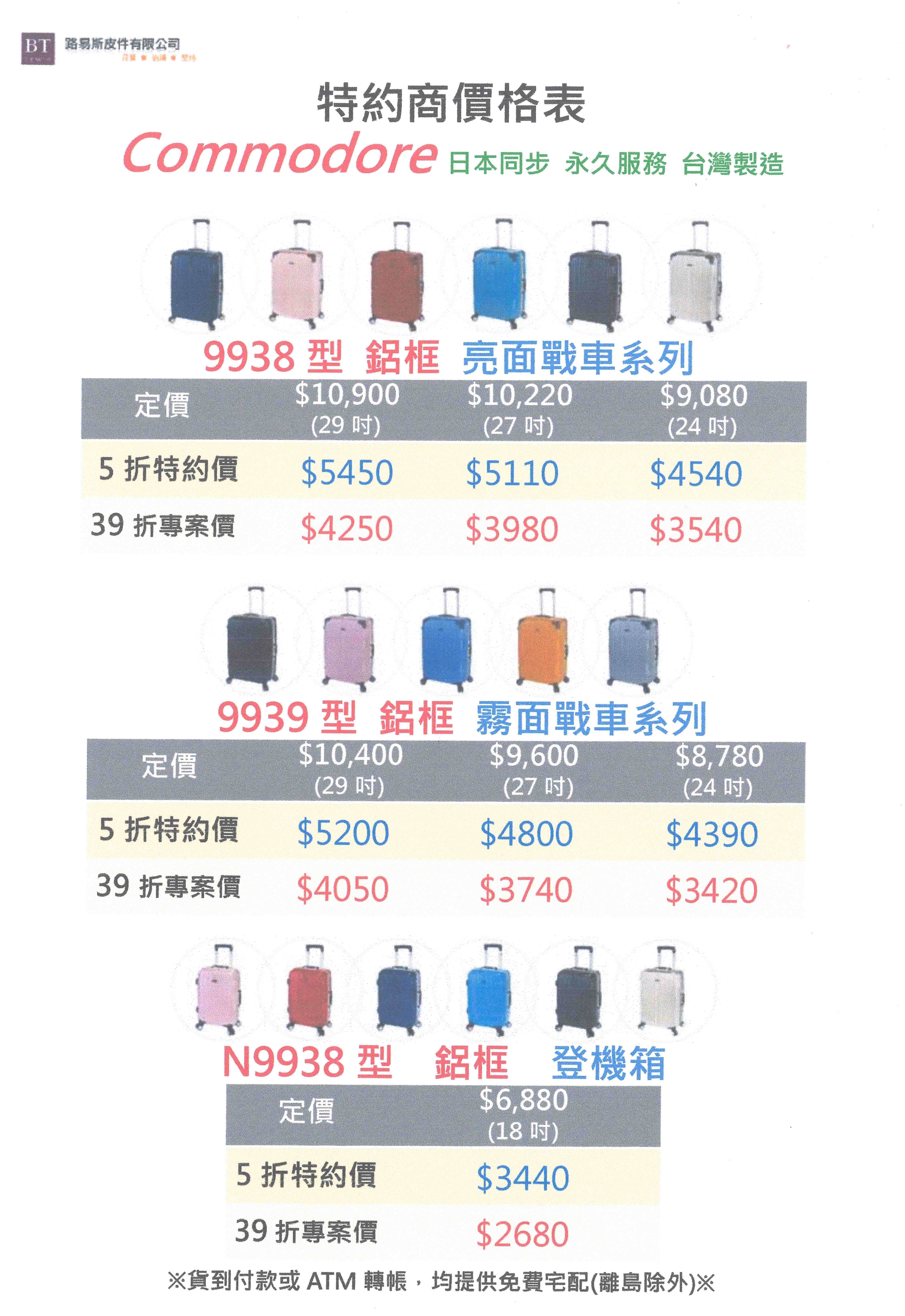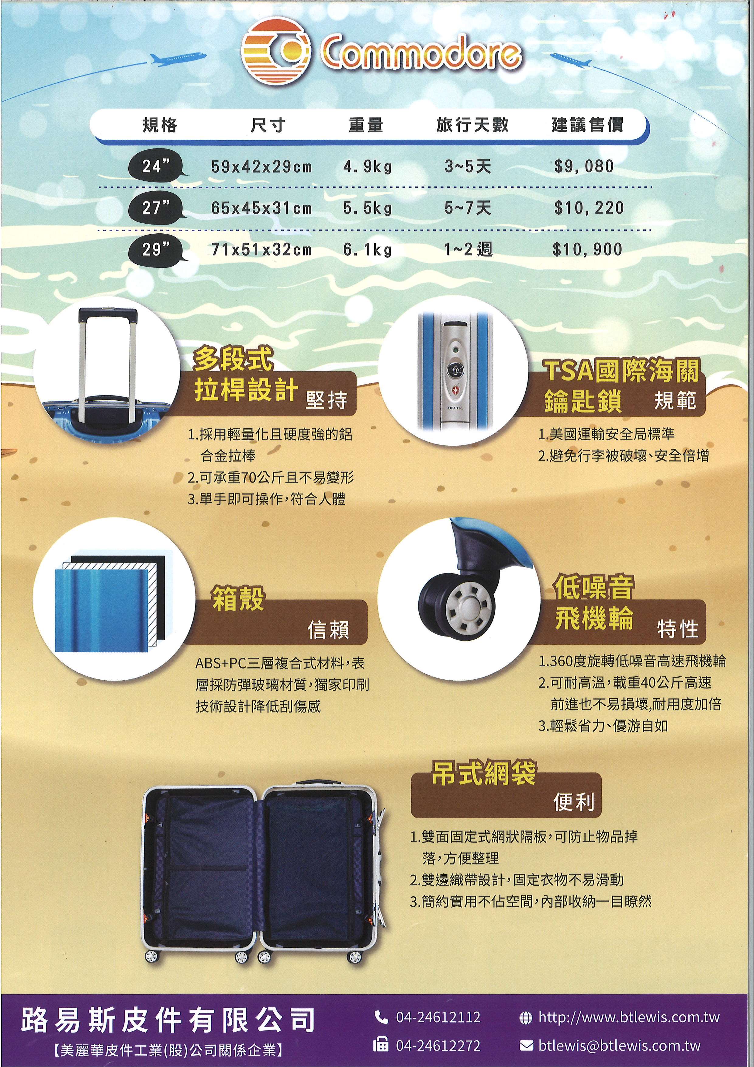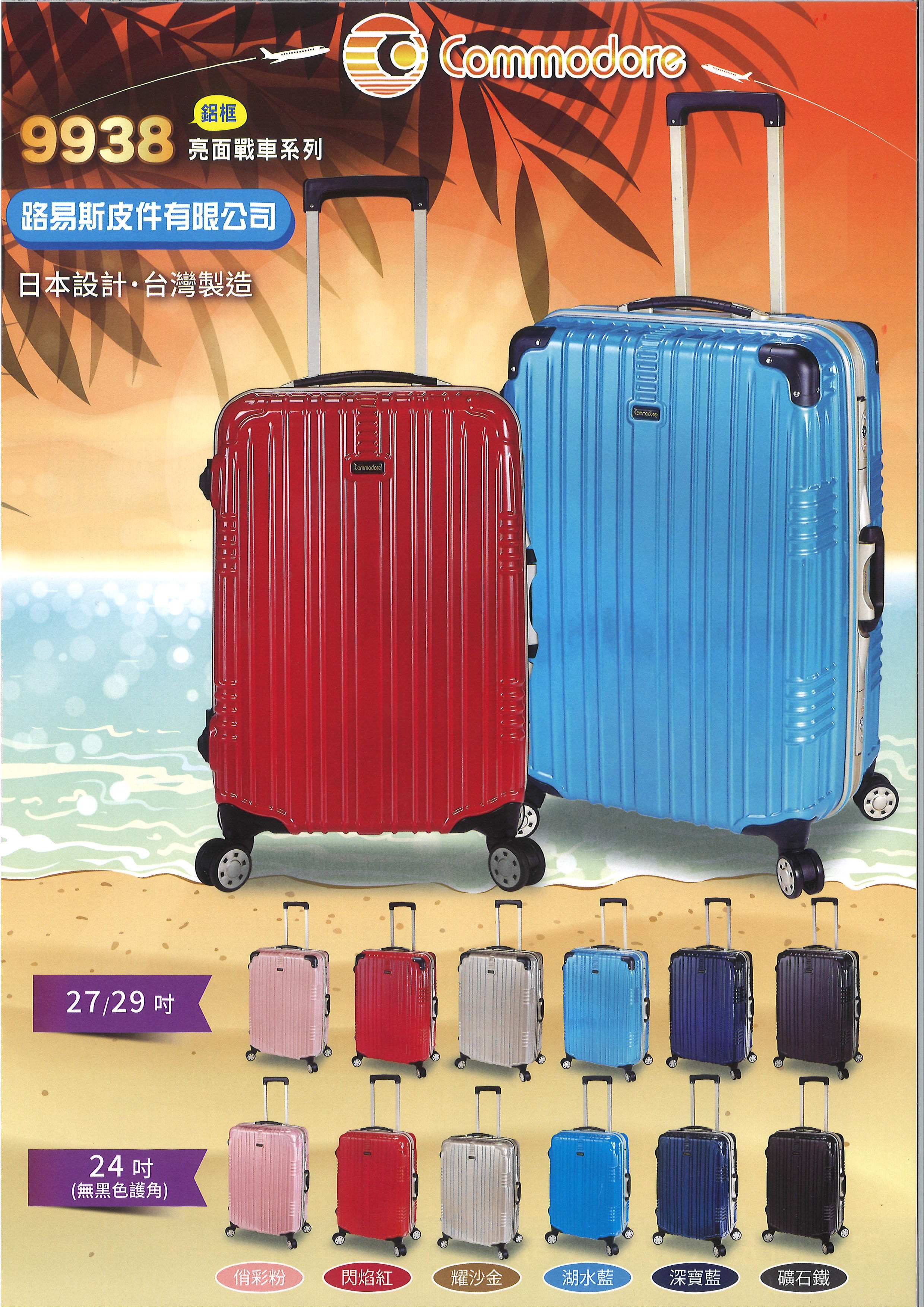 路易斯皮件有線公司專售美麗華 Commodore 戰車行李箱,戰車行李箱為國內最大台灣在地生產 ABS+PC硬殼旅行箱,並已行銷日本30幾年