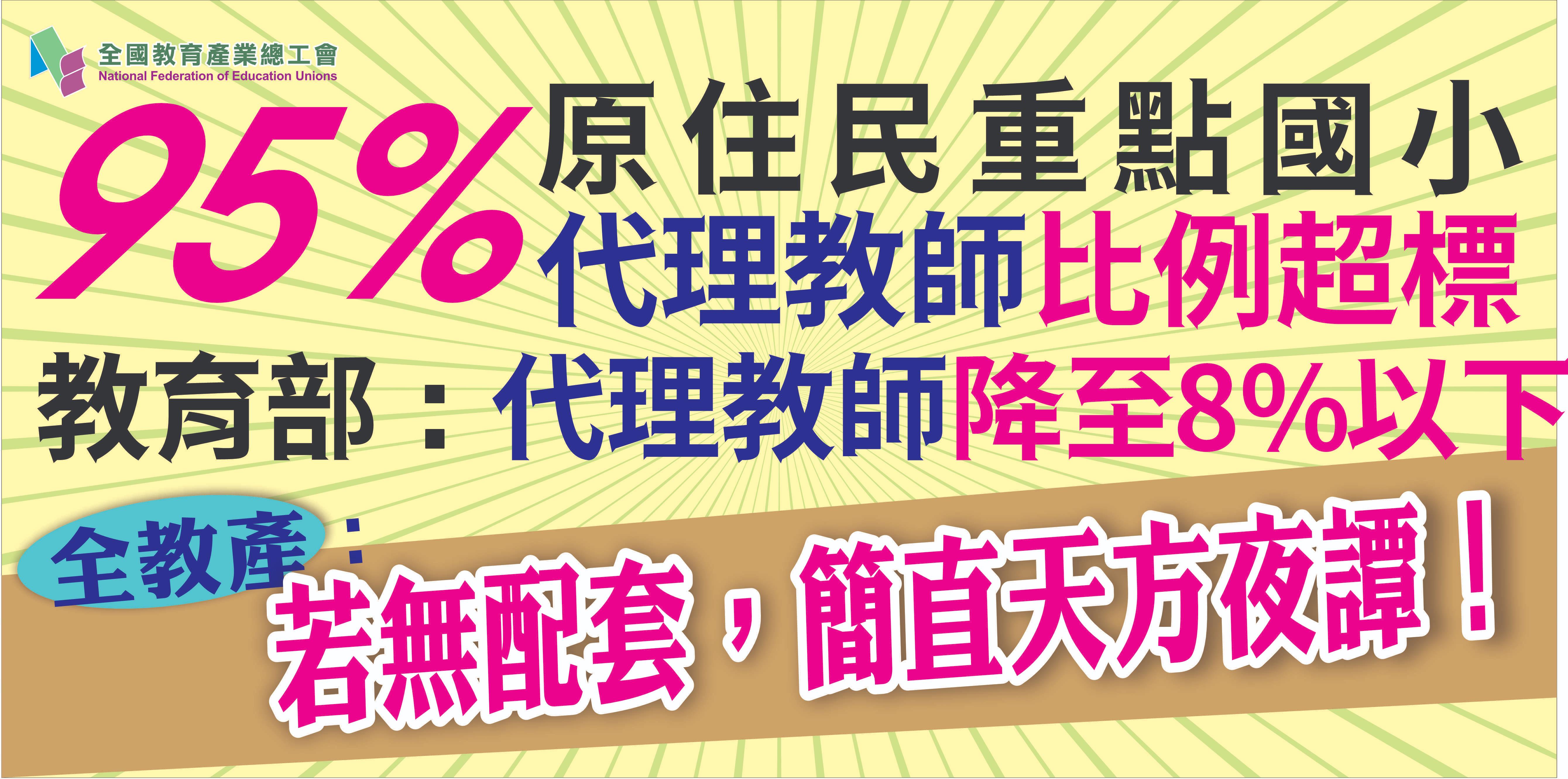 「國民小學與國民中學班級編制及教職員員額編制準則」雖規定:「國中小得在不超過全校教師員額編制數百分之八範圍內,將專任員額控留,改聘代理教師等」。但是經統計,公立國小之308所原住民重點學校,有294所超過8%,也就是說有95.5%之原住民重點國小不合乎規定。其中有128所全校代理教師超過三分之一,這其中又有49所的代理教師超過50%,49所中竟有25所位於花蓮縣,甚至部分學校扣掉主任後,全校都是代理教師。