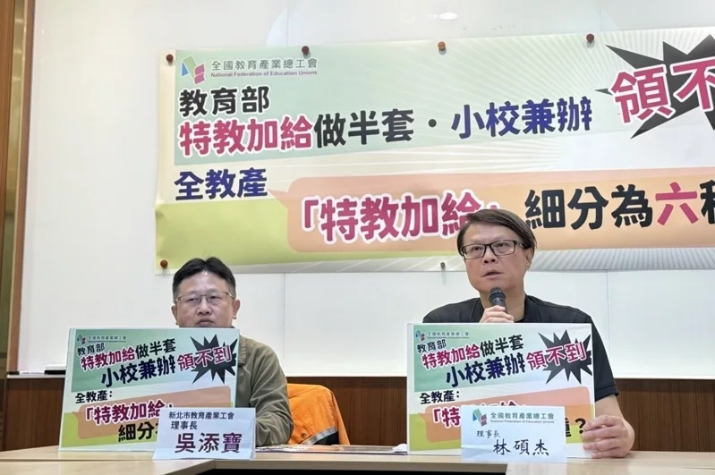 新北市教育產業工會理事長吳添寶則說,新北市的問題是,許多學校就算沒有特教組長,特教老師仍常常要做組長的行政工作。而特教老師1800元的加給30年未調,如今特教工作愈來愈繁重,許多特師也要做組長工作,只給1800元「太低了」,呼籲應上調加給。