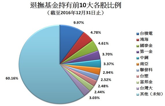 在退撫基金網站,退撫基金管理委員會只選擇性公佈幫委託人投資的前十大股票,而這前十大股票僅佔基金持有股票的39.84%(圖1)。換言之,退撫基金委託人無從得知其餘60.16%的股票為何,也無從知道當中是否有地雷股。