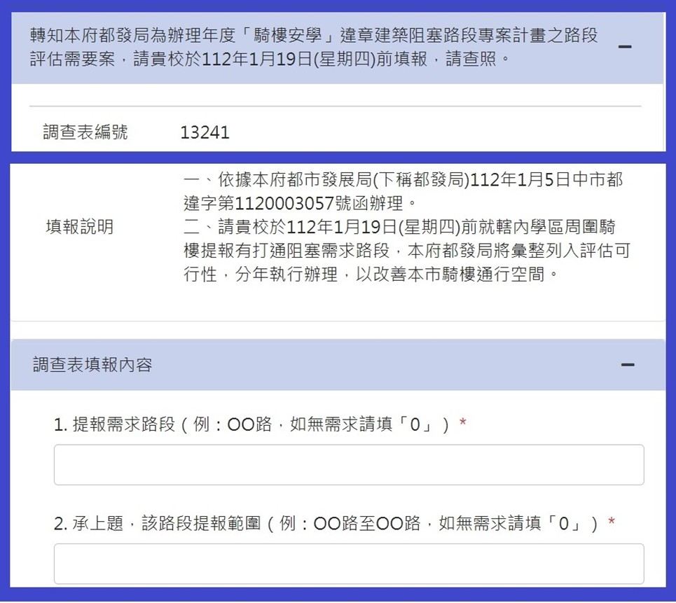 【臺中市政府:老師提報學區騎樓遭違章建築阻塞者】