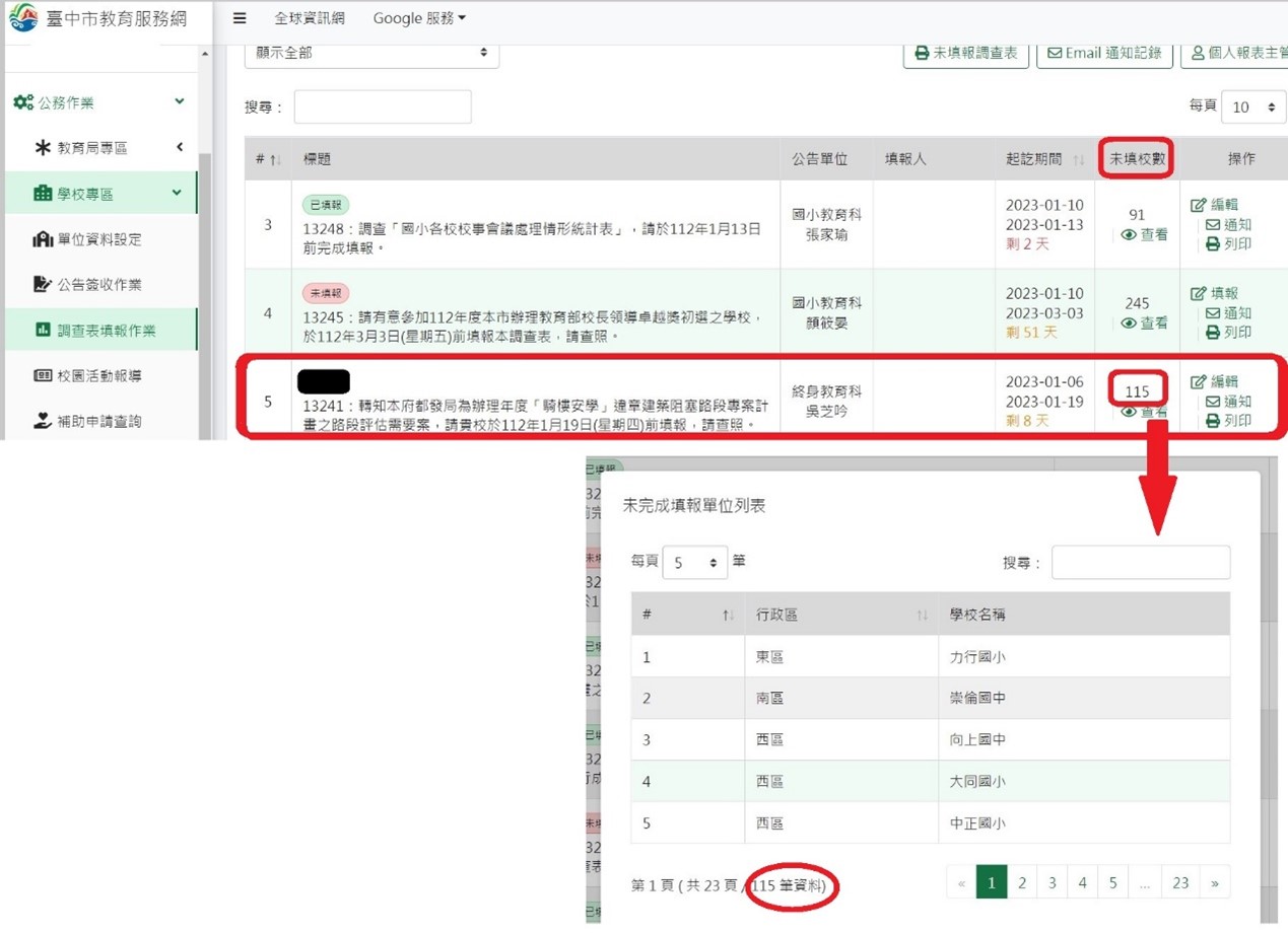 【全教產】要詢問臺中市教育局的是歷次表單有多少是尊重校方自願性?有多少是未強制要求老師做的?爾後此類表單是否註明自由填報?