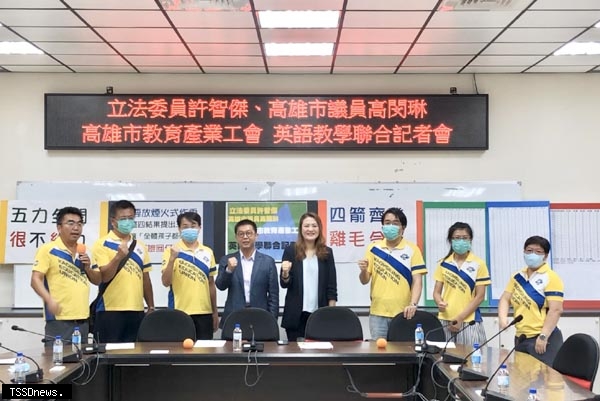 記者會最後,高閔琳議員、許智傑立法委員和全國教育產業總工會與高雄市教育產業工會共同批評韓國瑜前市府的雙語教育是「四箭齊發、雞毛令箭;五力全開、很不給力」;期待教育局能立即檢討調整政策措施,讓高雄市的雙語教育能更務實,高雄市的孩子才有未來。