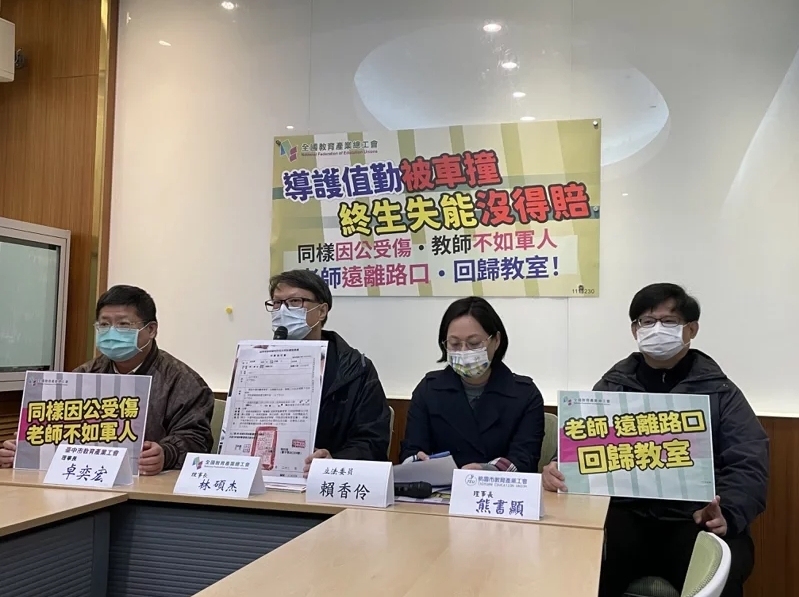 高雄市鳳翔國中梁姓教師導護執勤遭車撞已滿一年,日前確定終生失能、不能從事任何工作。全國教育產業總工會今(12/30)召開記者會,高呼:「老師遠離路口,回歸教室。」並呼籲修正「公務人員執行職務意外傷亡慰問金發給辦法」,將導護工作列為特殊職務,至少可由學校幫忙投保意外險。