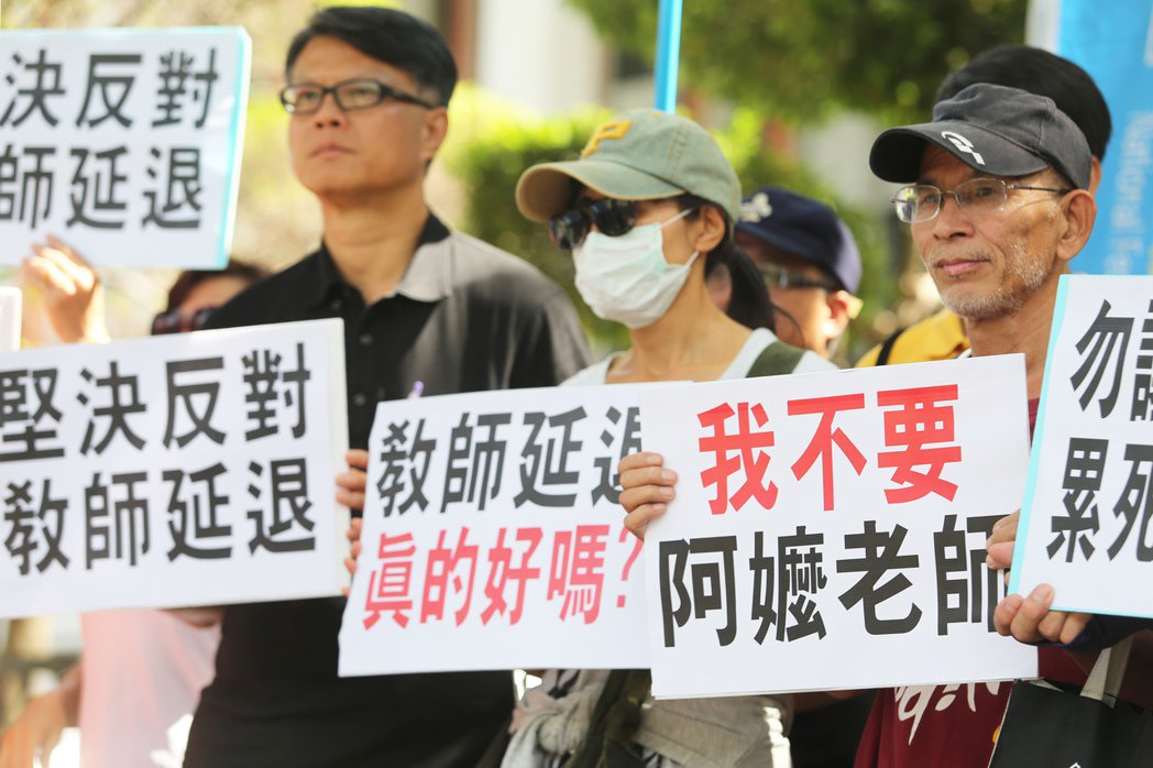 圖為全國教育產業總工會前往教育部抗議民進黨提出的教師延退方案,認為65歲才退休會造成老老師退不了,新老師進不來,讓國家教育陷入困境。記者蘇健忠/攝影