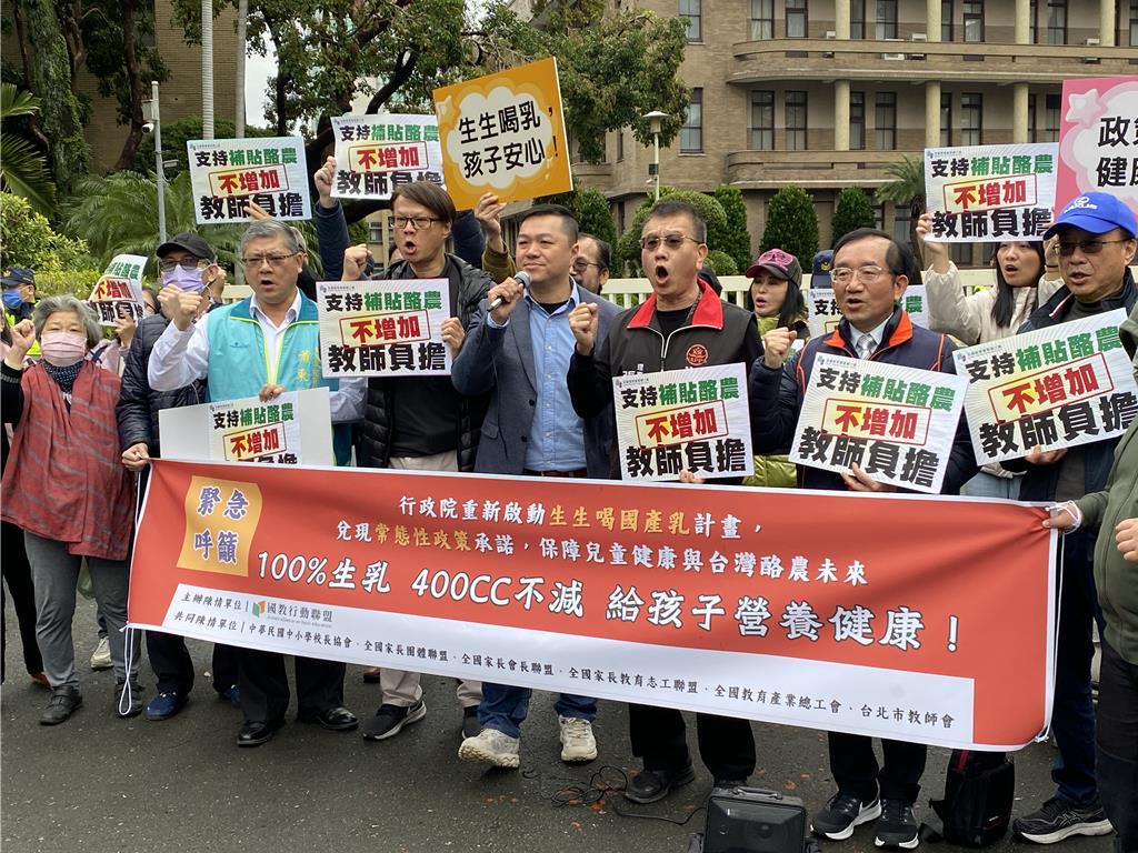 國教行動聯盟等多個教育團體今天到行政院前陳情,要求重新啟動「生生喝國產乳計畫」。(林志成攝)