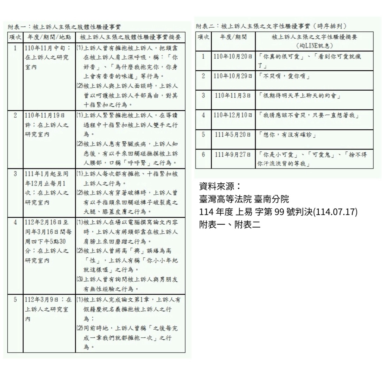⏹︎ 臺灣高等法院 臺南分院 114 年度 上易 字第 99 號判決(114.07.17)及附表一、附表二